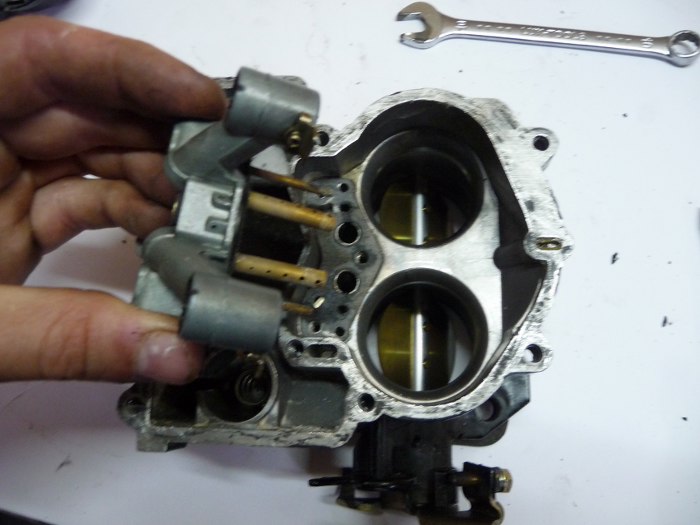 I od spodu gaźnika. Trzeba jeszcze zdjąć przepustnice.