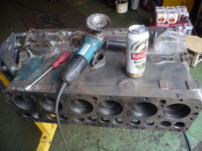 Zanim się nią Michał zajął, oczyścił z grubsza blok i szczotką drucianą usunął starą farbę i rdzę. Piwo musiało się tu znaleźć przypadkiem.