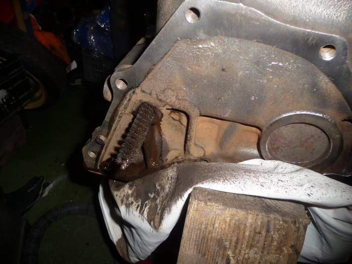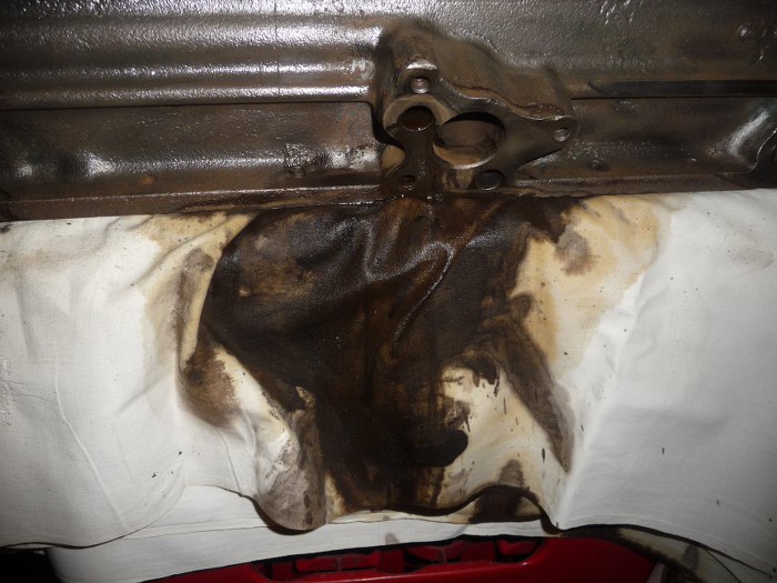 Po otwarciu kanałów olejowych ze środka można wymyć całą masę szlamu olejowego.
