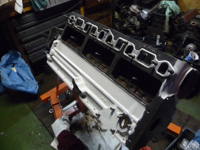 Przed myciem bloku Michał postanowił lekko poprawić kanały w bloku, żeby później nie robić opiłków w czystym bloku. Tu widać jak wyglądają kanały po przyłożeniu uszczelki.