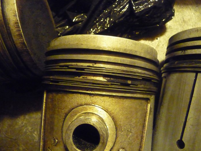 A poniżej widać ślad po komorze spalania na tłokach.