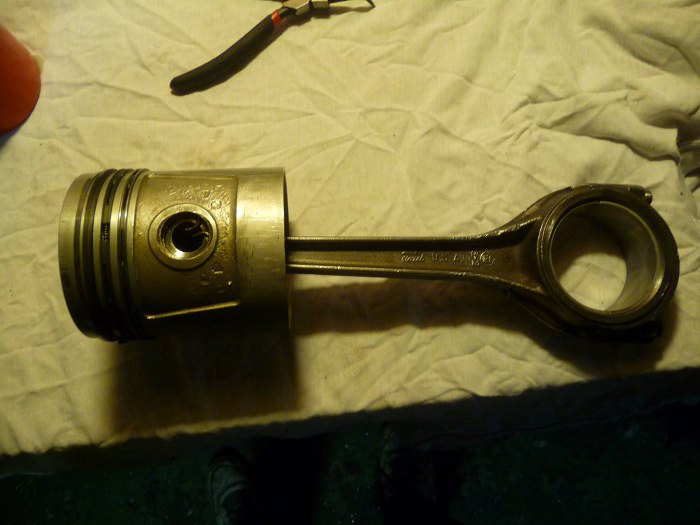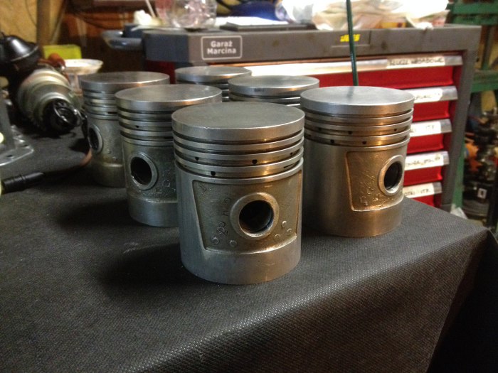I jeden tłok umyty. Są to dość duże tłoki, odlane z cienką ścianką. Śmialiśmy się, że można ich używać jako dzwonków dla krów, bo mają dość ładne brzmienie.