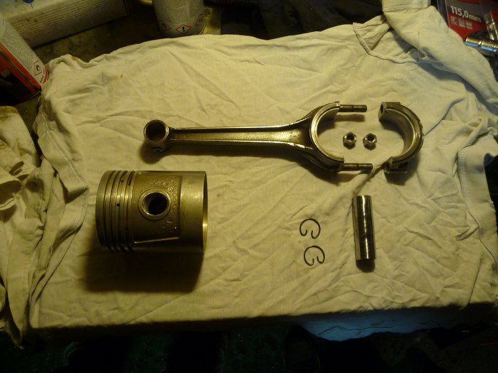 Następnie Michał wymył korbowody i sworznie tłokowe. Teraz można składać komplety takie jak ten.