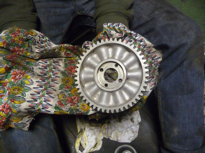 I wał korbowy na miejscu. STrasznie ciężki ten drań. Do tego odlew wygląda jak siekierą ciosany... Ale nie zapominajmy, że ten silnik jest z 1949r, ma teraz 66 lat.