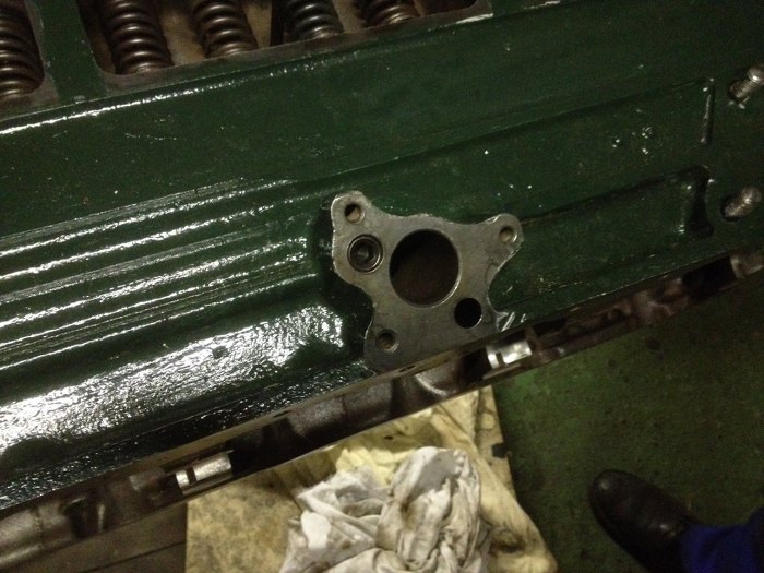 Po przeanalizowaniu układu olejowego doszliśmy do wniosku, że najprościej będzie zaślepić wyjście z pompy oleju na magistralę olejową silnika, a zamiast tego dorobić nową, grubszą pokrywę pompy oleju, z otworem na wyjście oleju na filtr. Z filtra olej będzie wracał do silnika którymś z otworów, w które obecnie wkręcone są korki. Dzięki temu cały olej przejdzie przez filtr zanim trafi do silnika. Na początek trzeba nagwintować odpowiedni otwór w bloku.