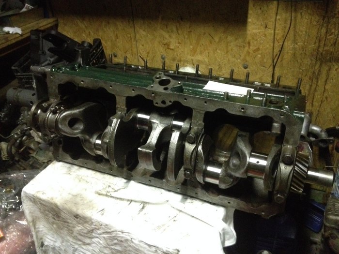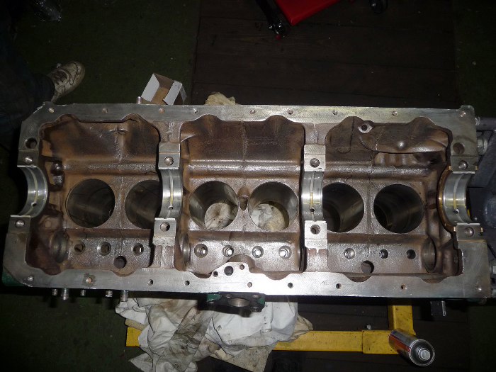 Teraz blok przygotowany jest do zakładania panewek i wału korbowego. Widać na zdjęciu, że jest domyty, mimo, że nie było to łatwe :)