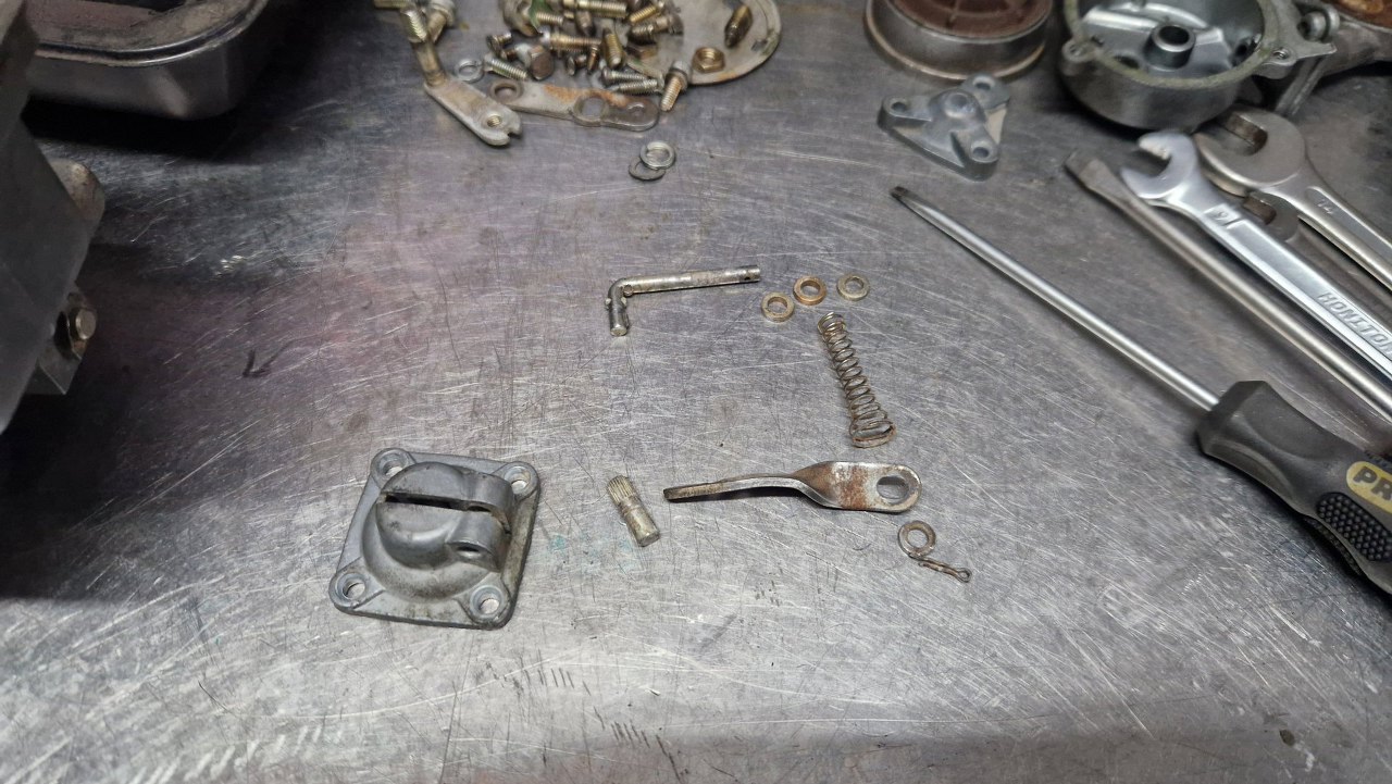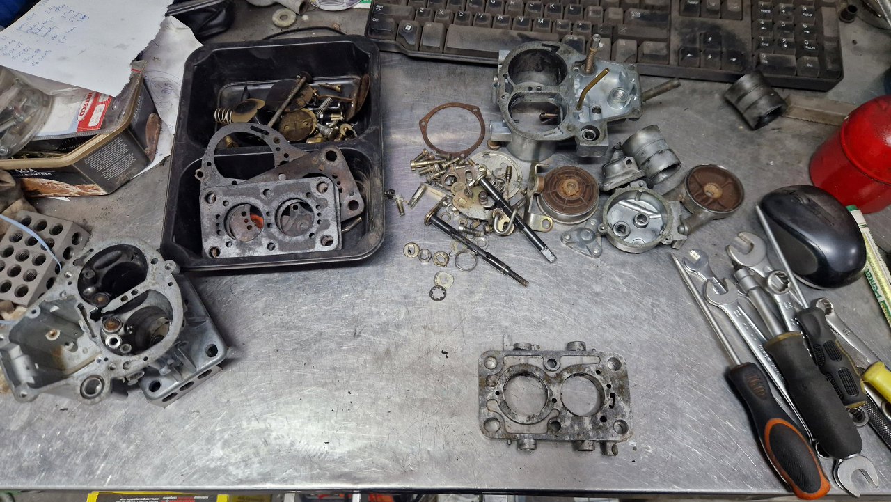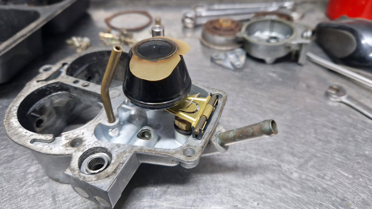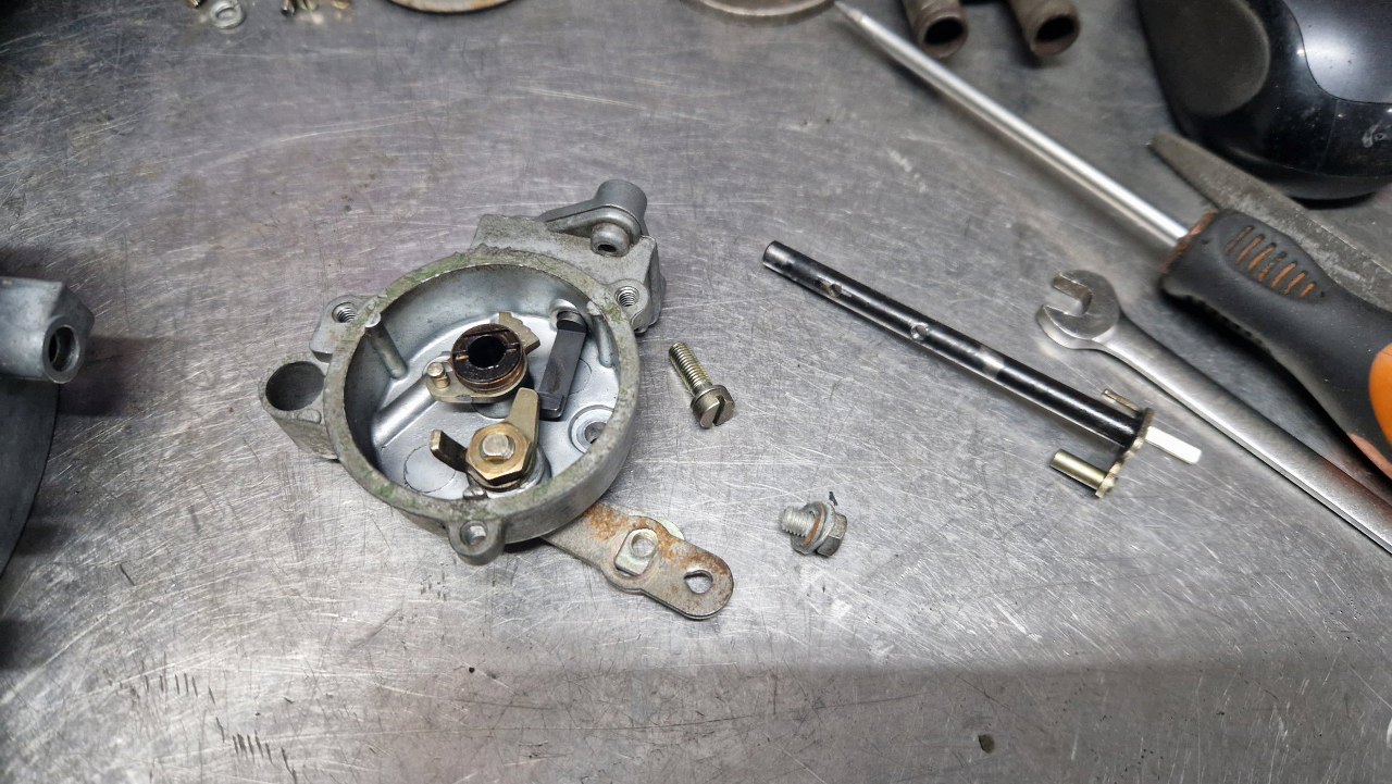 Odwracam gaźnik żeby się dostać do przepustnic.