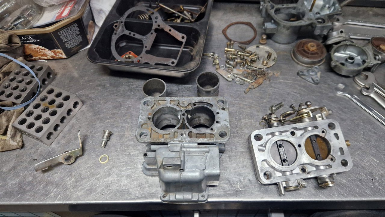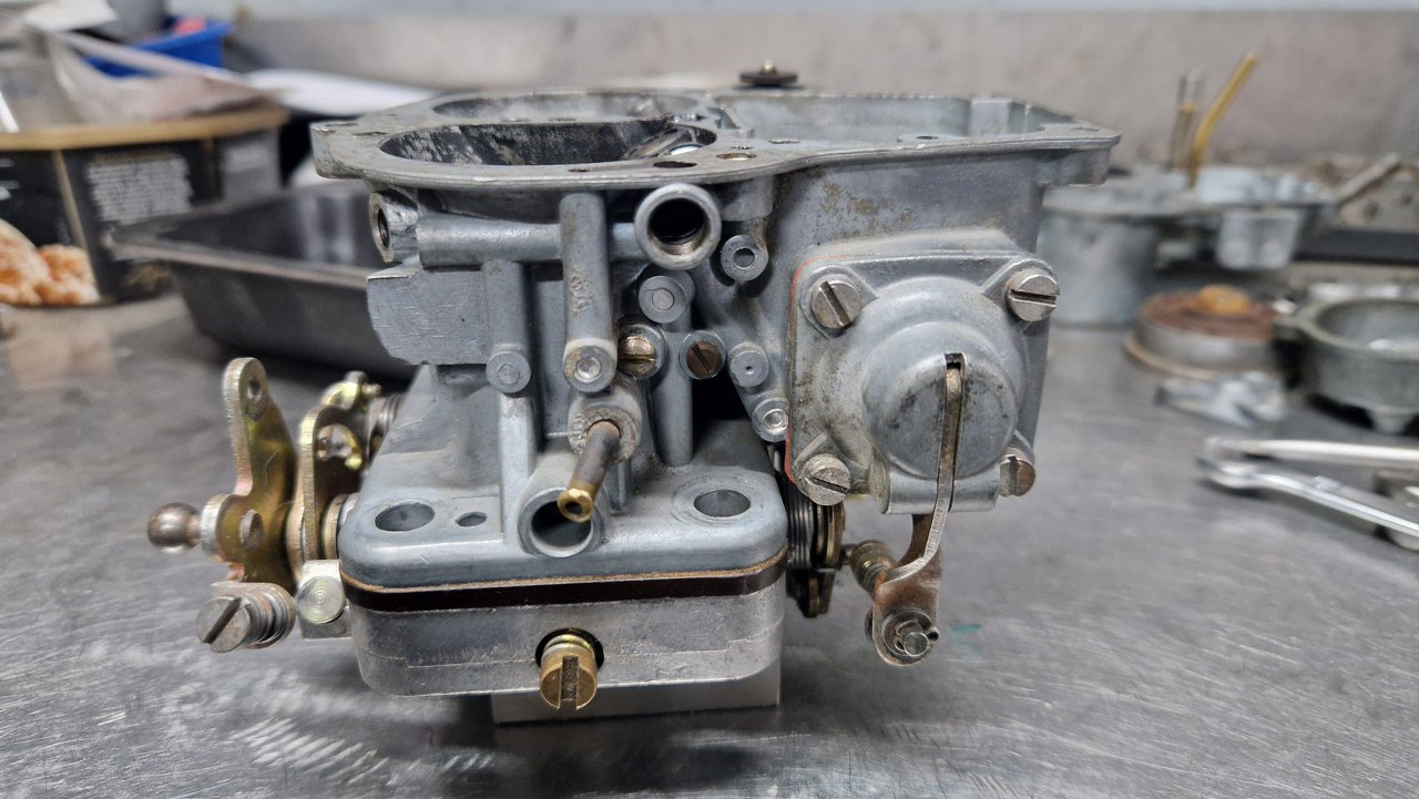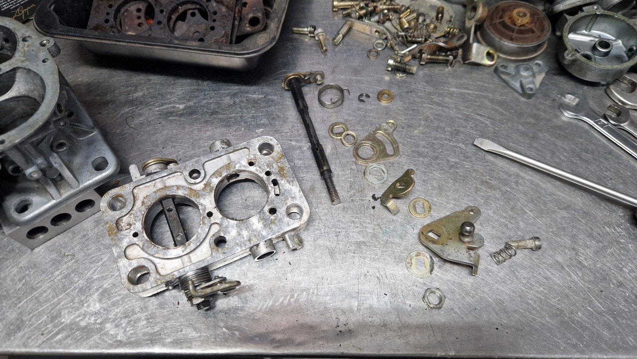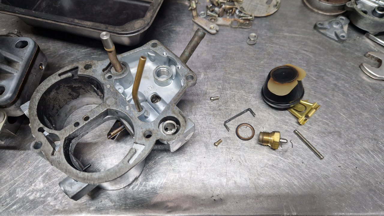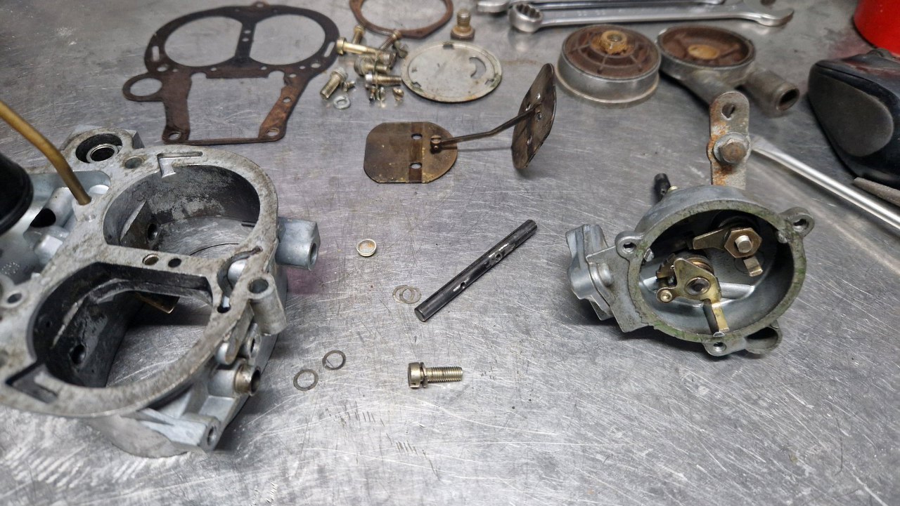 Odwracam gaźnik żeby się dostać do przepustnic.