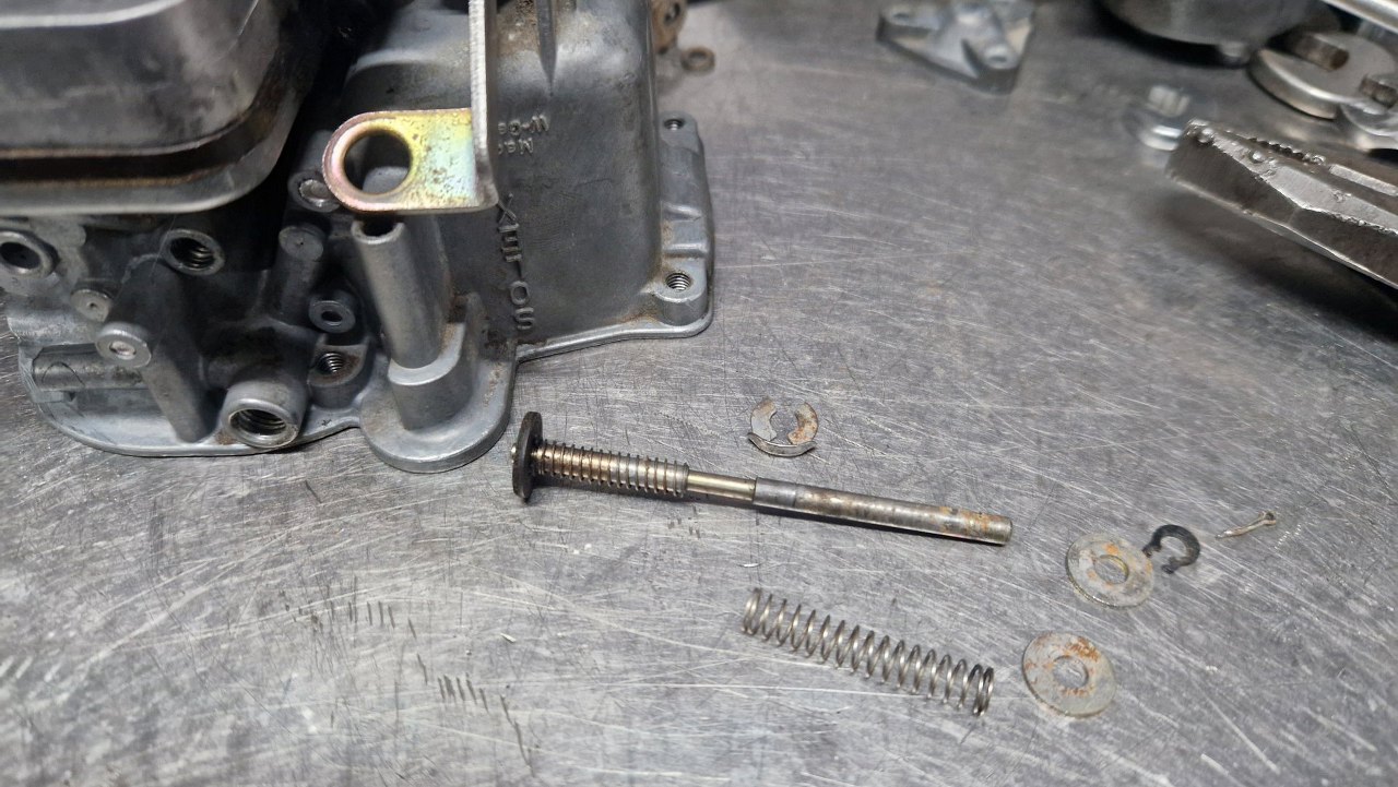 Teraz zdejmę pokrywę pompki przyśpieszacza. Wykręcę też drobne śrubki z boków korpusu.