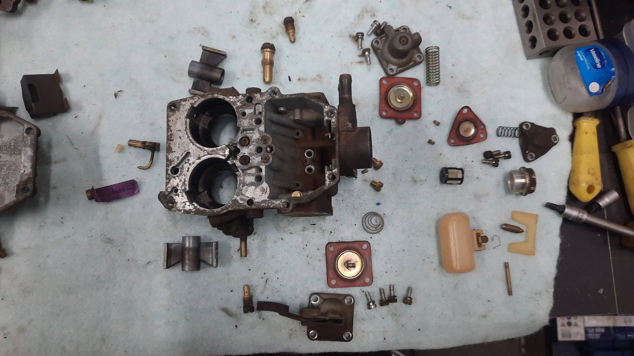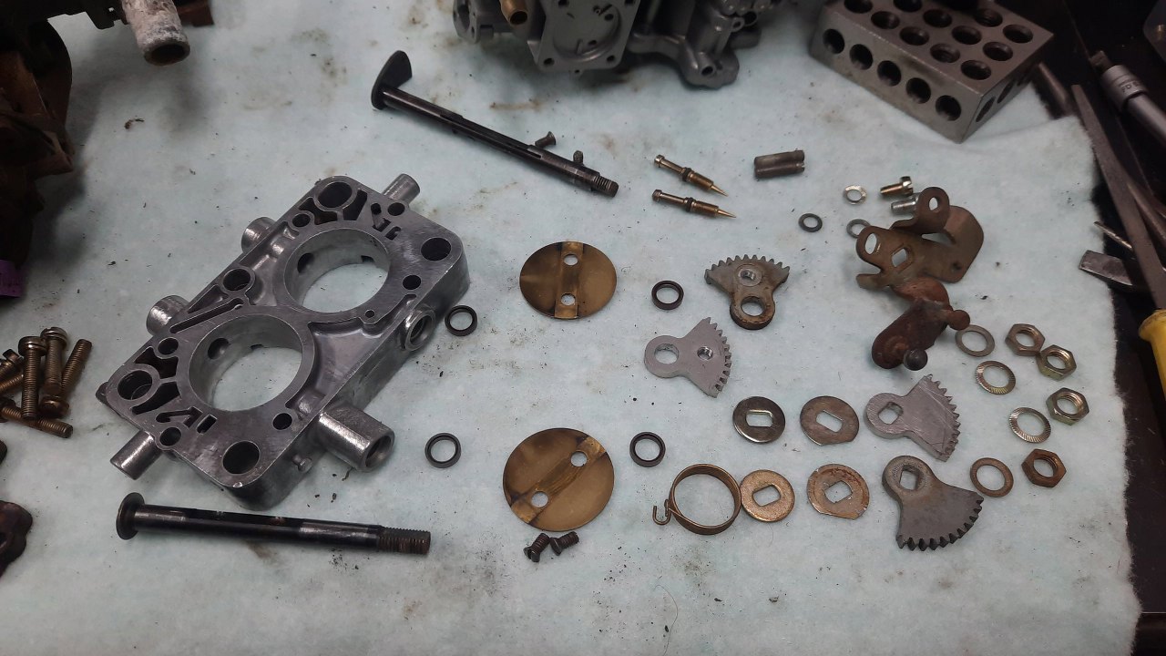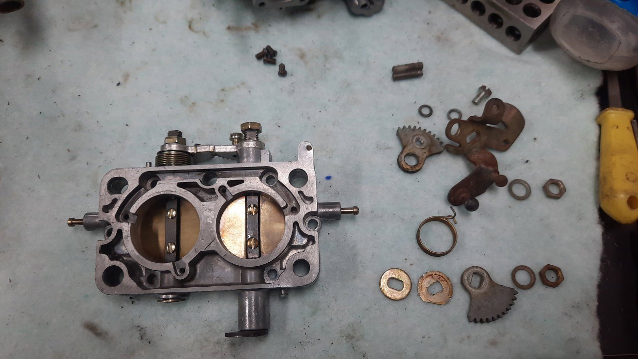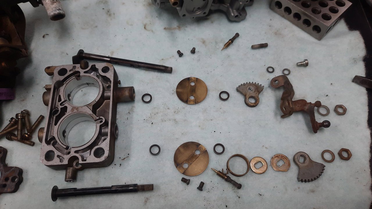 Wykręciłem z korpusu gaźnika co się dało i poukładałem dookoła.