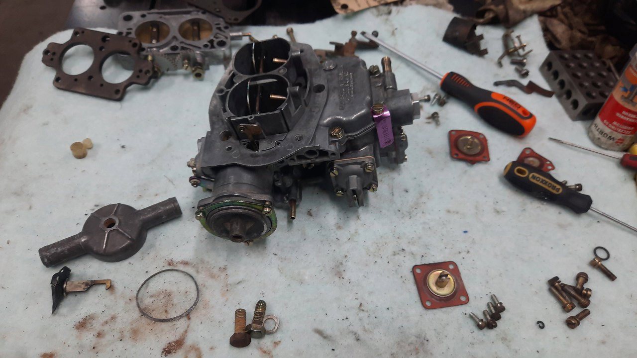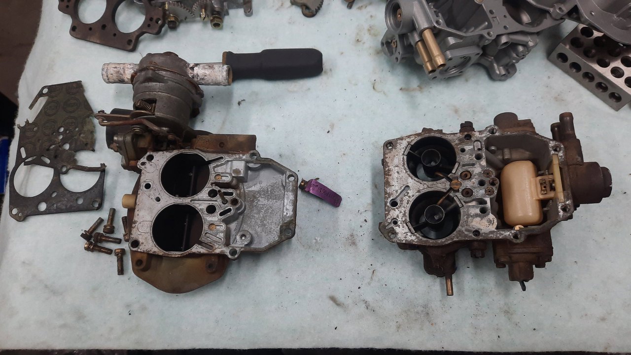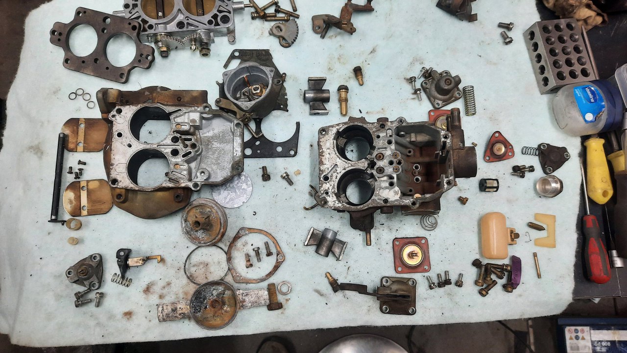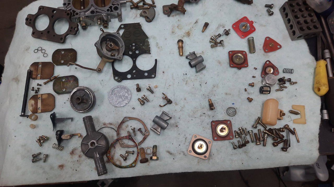 Wykręciłem z korpusu gaźnika co się dało i poukładałem dookoła.