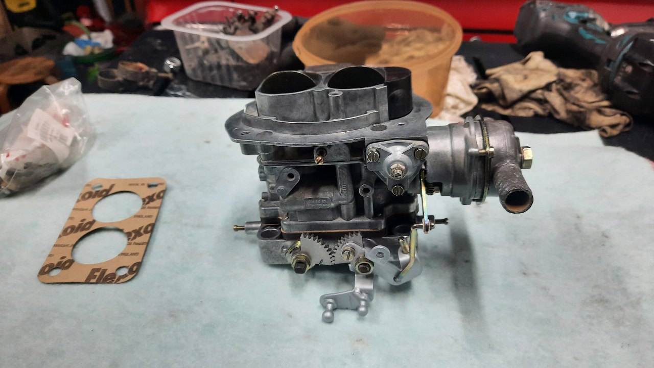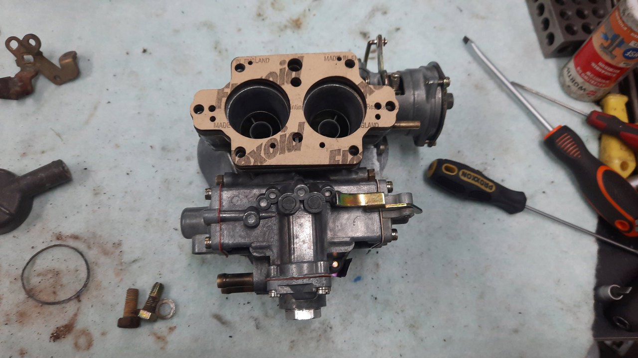 Zmontowałem to, na razie bez elementu mocującego linkę gazu - o tym potem. To, co zostało, trafi do puli części do odnowienia. Taka pula części to fajna rzecz - typowe gaźniki mogę dzięki temu w ciągu kilku dni odesłać zrobione. CHociaż czasem trafiają się ciut inne i wtedy części w puli nie ma :(.