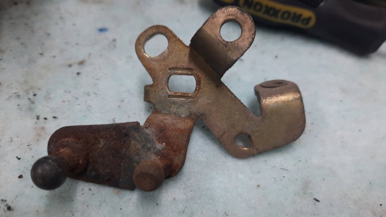 Został element, do którego przymocowana jest linka ssania. Nie wiedziałem jak to jest w tym silniku rozwiązane, bo oryginalnie była tylko jedna kulka, a tu mamy wspawaną drugą. Nie chciałem ryzykować, że coś tu nie będzie pasować, więc tak to zostawimy.