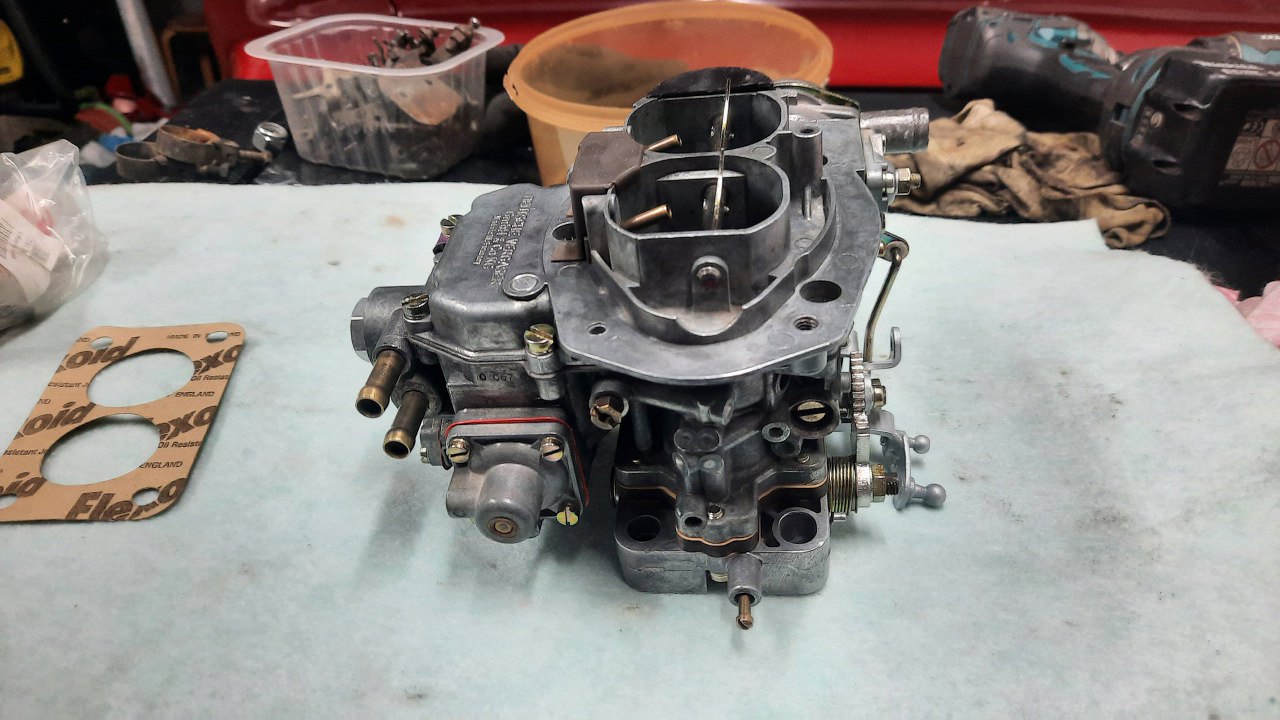 Złożyłem pokrywę gaźnika z klapkami i mechanizmem ssania.