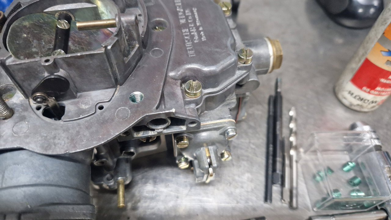 Został jeden drobiazg. Pokrywa gaźnika co prawda jest trochę wygięta, ale nie wpływa to na działanie gaźnika, a prostowanie mogłoby doprowadzić do połamania pokrywki. Tego więc nie ruszam. Problem jest w gwincie szpilki mocującej obudowę filtra - jest zerwany.