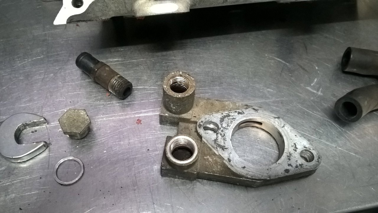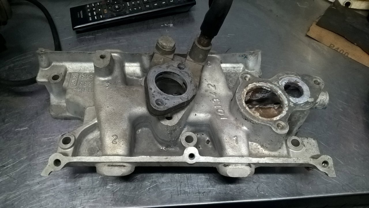 Razem z gaźnikiem był kolektor dolotowy, nim też się zajmę. Na kolektorze jest jeszcze podstawka pod gaźnik. Z niej brane jest podciśnienie do serwa hamulcowego.