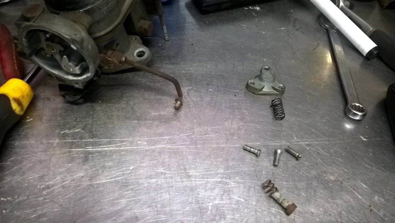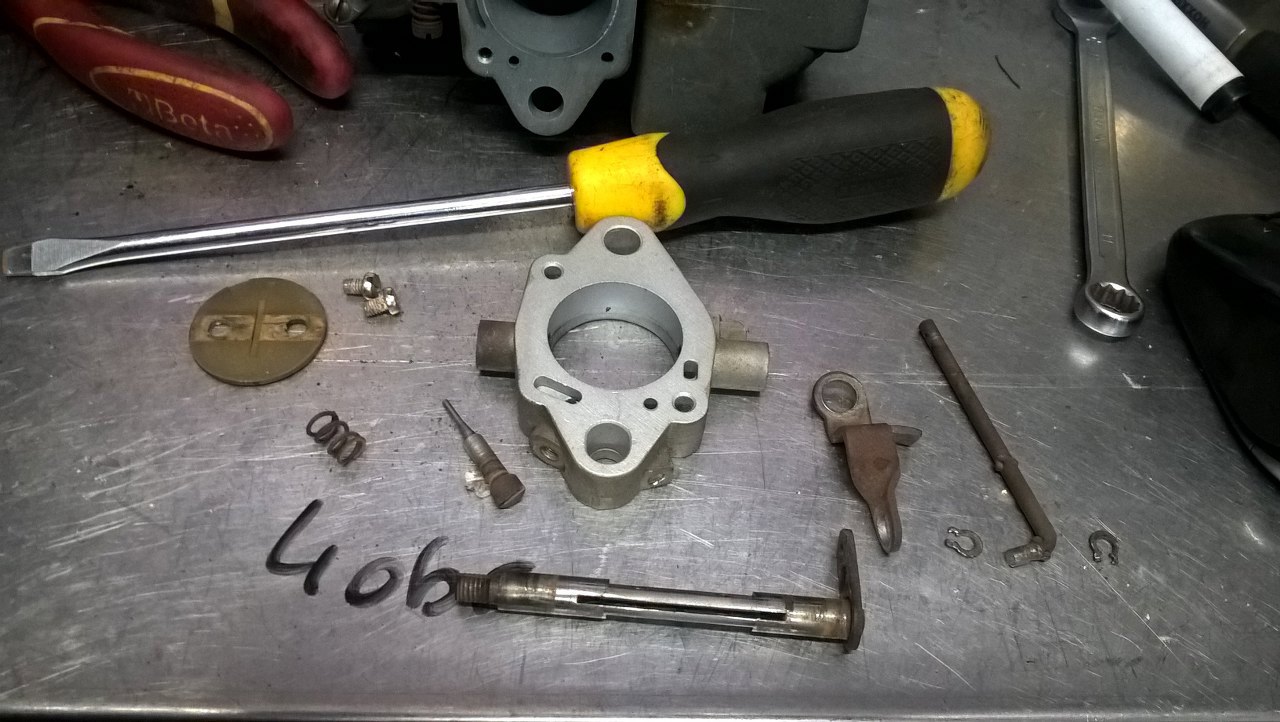 Z podstawki wykręciłem co się da, te części trafią razem ze śrubkami gaźnika do cynkowania.