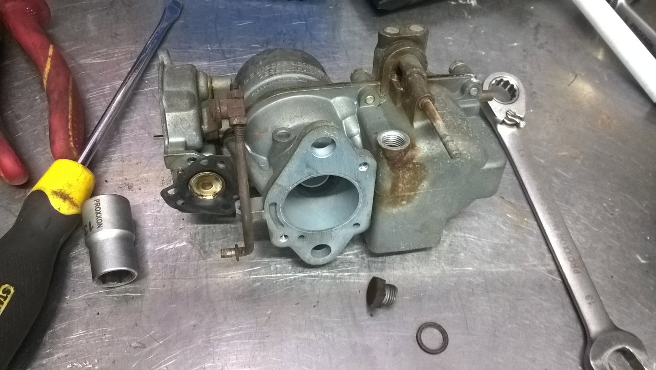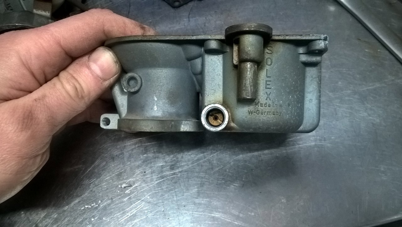 Najpierw odkręciłem puszkę ssania. Co ciekawe, chyba wszystkie Solexy z tamtego okresu miały dokładnie tą samą puszkę.