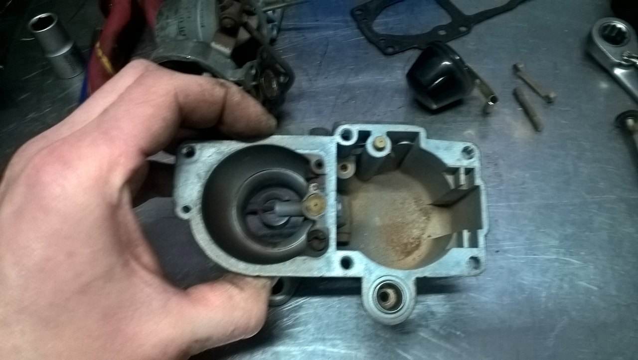 Gaźnik w sumie nie jest w takim złym stanie. W komorze pływakowej nieco osadu, ale bez tragedii.