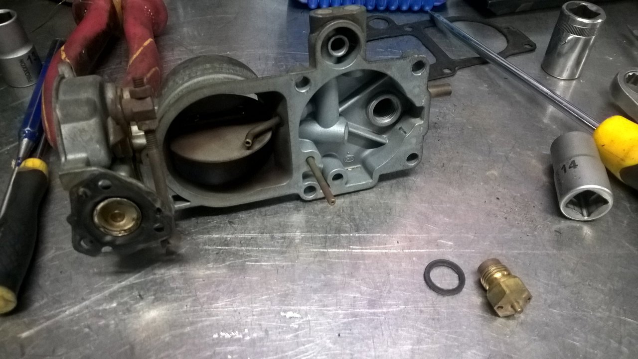 Rozłożyłem przepustnicę w drobny mak. Zanotowałem sobie o ile była wykręcona dysza wolnych obrotów.