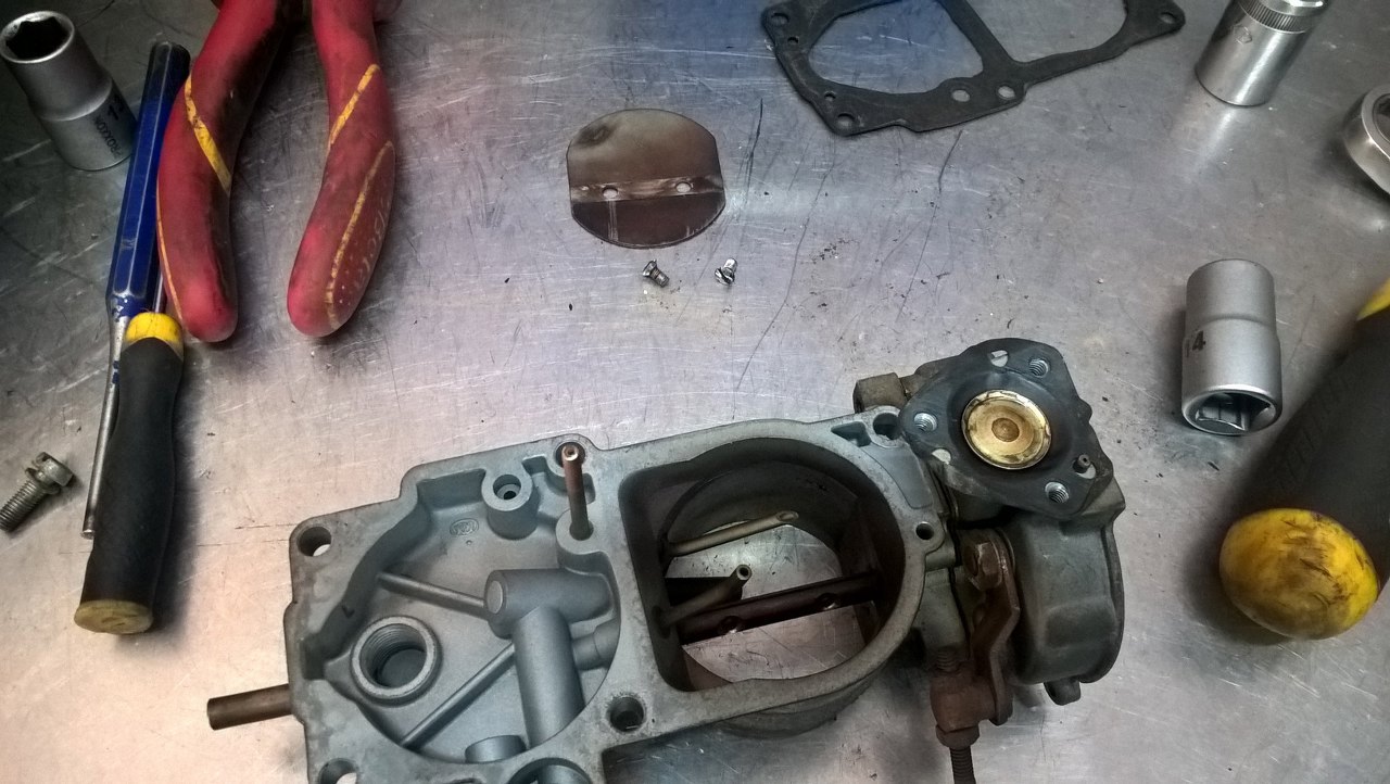 Odkręciłem też obudowę mechanizmu ssania z pokrywki gaźnika.