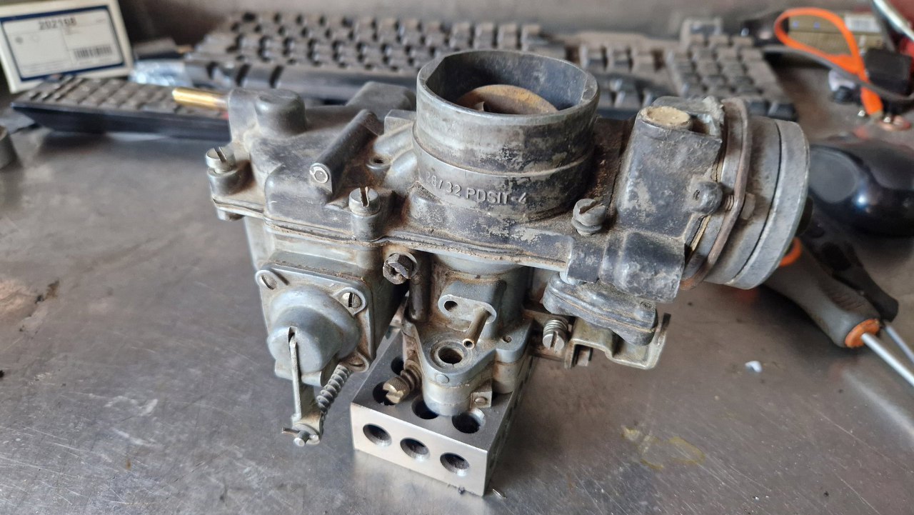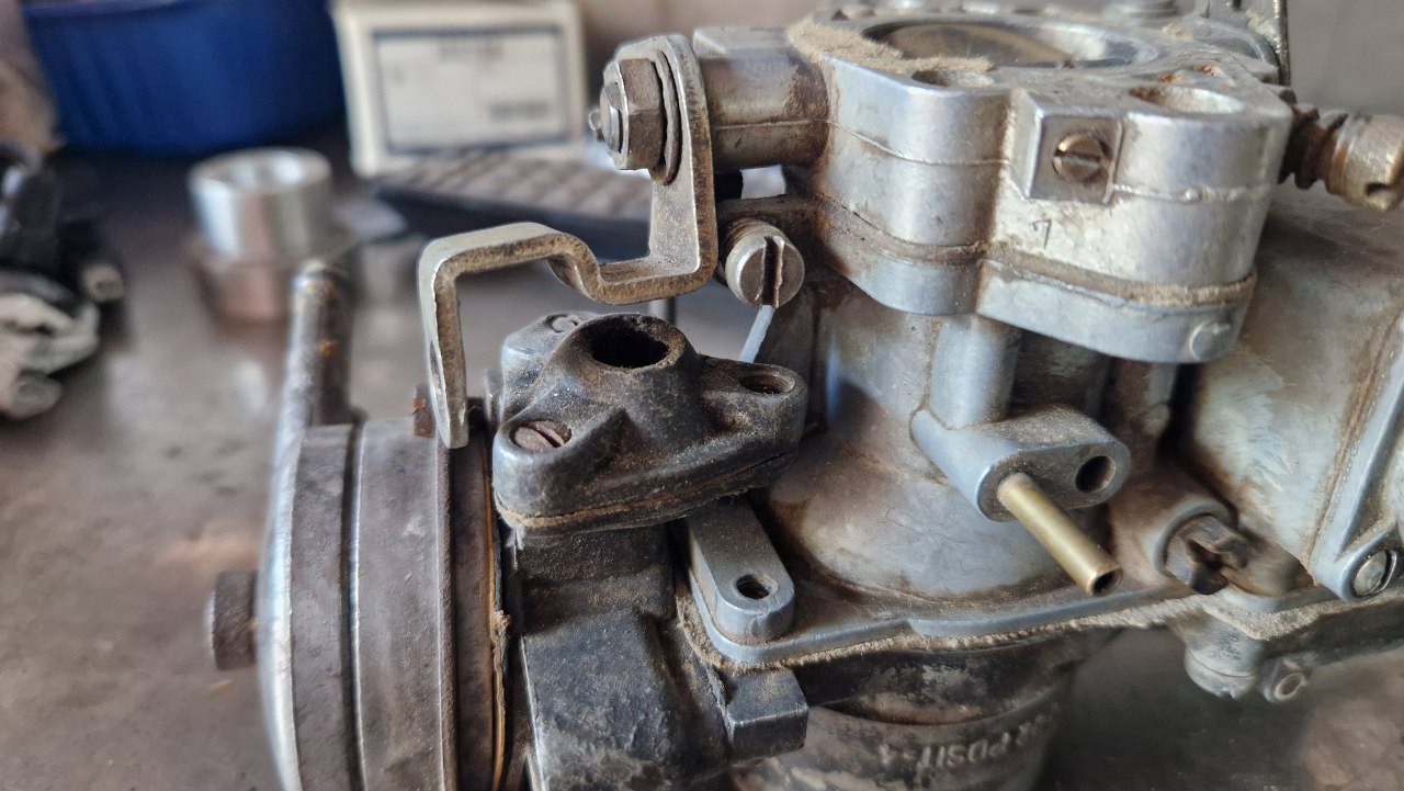 Dostałem do zrobienia gaźnik Solex 28/32 PDSIT-4 z Taunusa serii M, z silnikiem V4. Z zewnątrz nawet nie za bardzo zapyziały...
