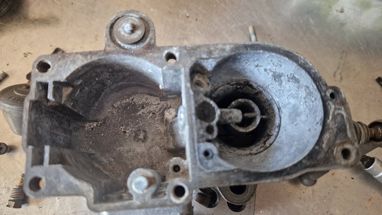 Kolejny rzut oka do środka. No nie jeździł on ostatnio :). Ale w górnym otworze widać podkładkę, której nie było w poprzednim gaźniku.