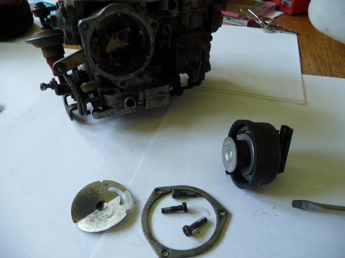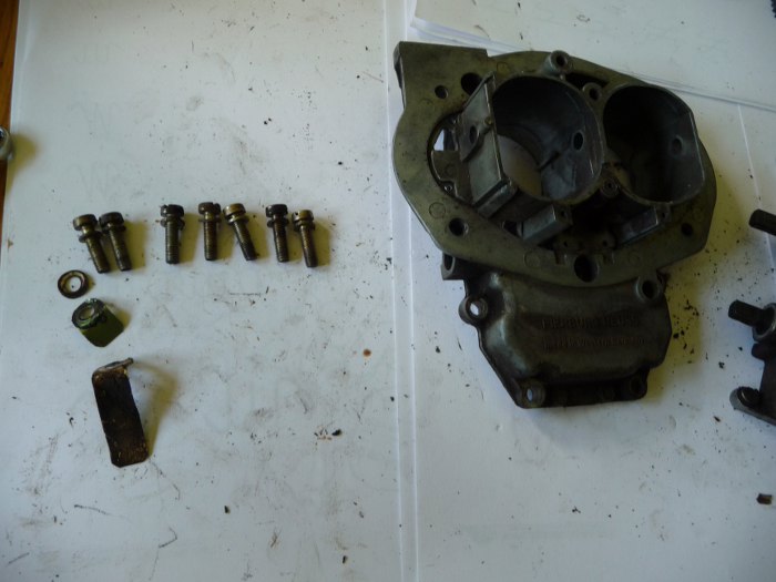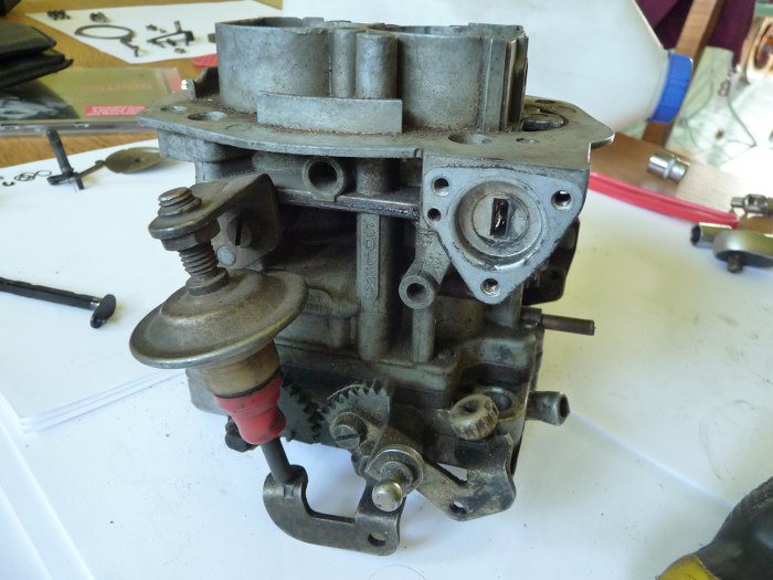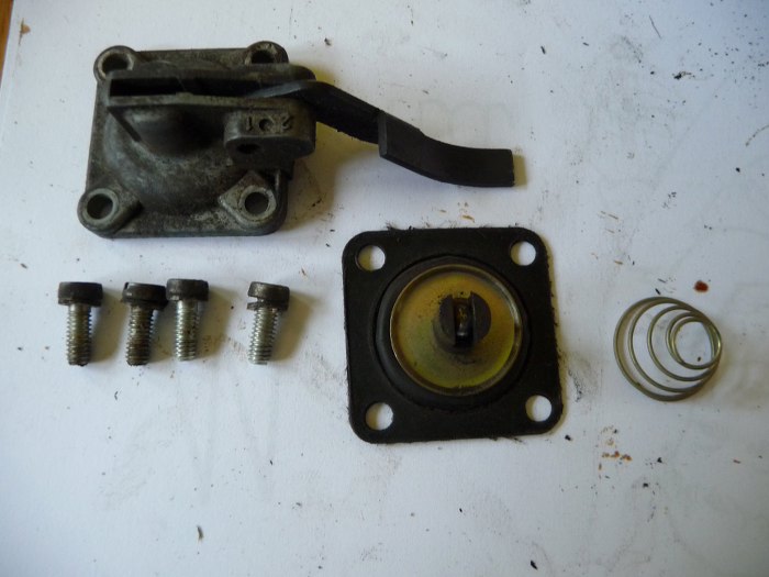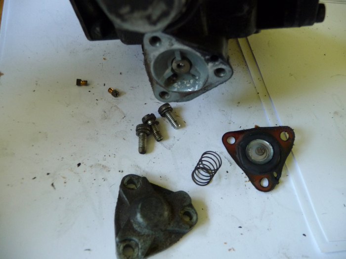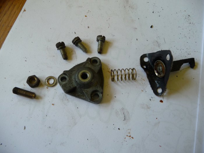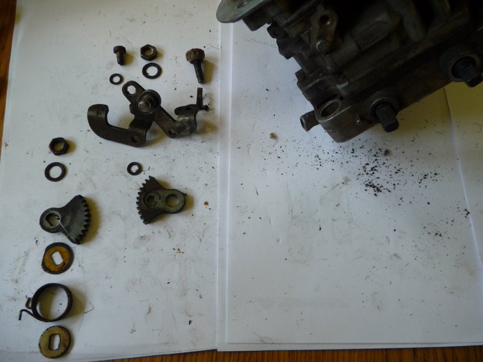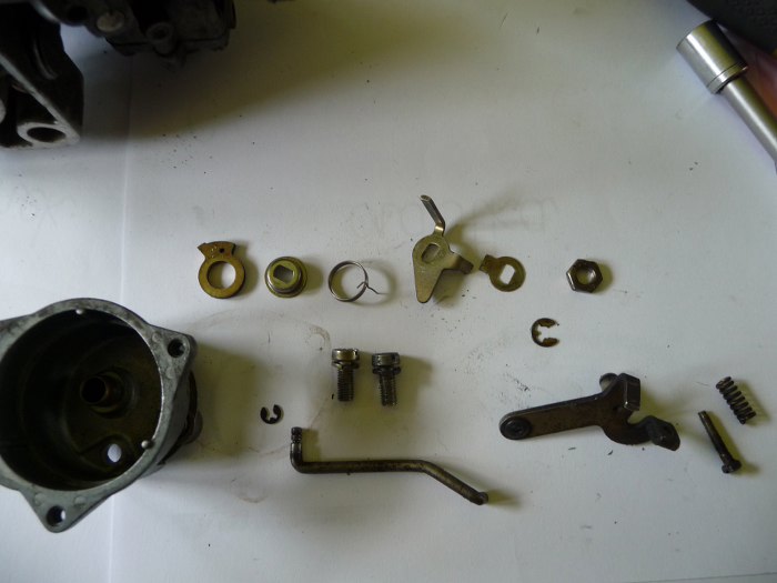 Zdjęta pompka przyśpieszacza. Dźwigienkę z obudowy też demontuję do cynkowania.