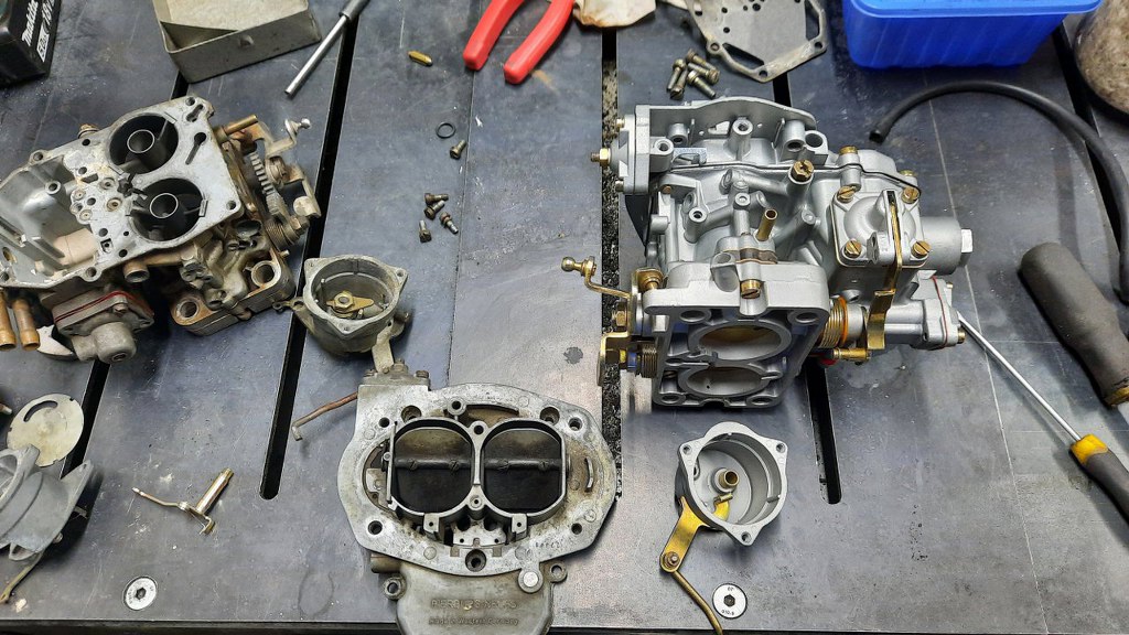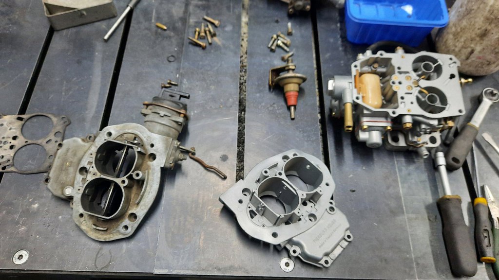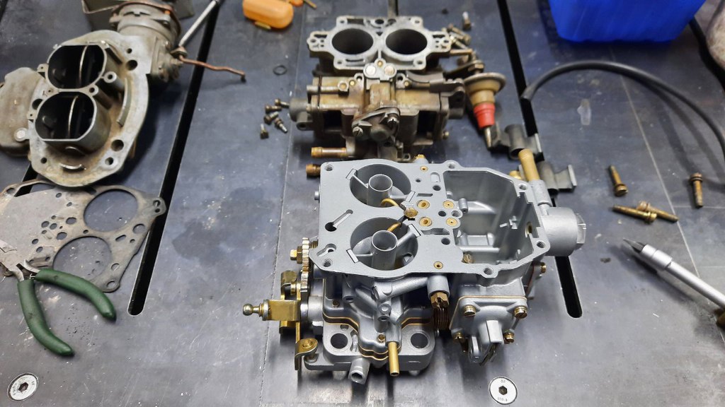 Odezwał się do mnie właściciel Forda Capri z silnikiem 2.3 V6. Miał problem z gaźnikiem. Umówiliśmy się, że go przywiezie, żebym zregenerował. Gaźnik, nie Capri :). Efekt widać na poniższych zdjęciach. Ostatecznie okazało się, że gaźnik jest tak zapyziały, że po prostu złożyłem mu drugi, "nowy", z części, które mam odłożone na wszelki wypadek, a ten sobie może kiedyś odnowię. Na szczęście miałem wszystkie potrzebne części, łącznie z odpowiednim korpusem - bo te gaźniki miały przynajmniej kilka różnych wersji. Oczywiście gaźnik dostał nowy zestaw naprawczy, a także nowe zębatki synchronizujące przepustnice. Miłego oglądania!