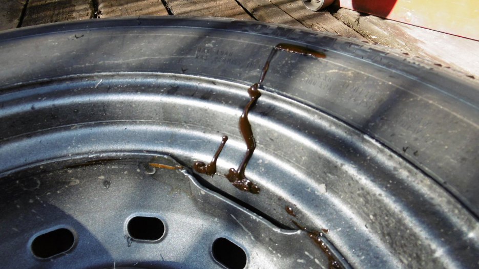 Smar stary, już dawno nie smaruje, ale musiał ostro się nagrzać, żeby się tak stopić.