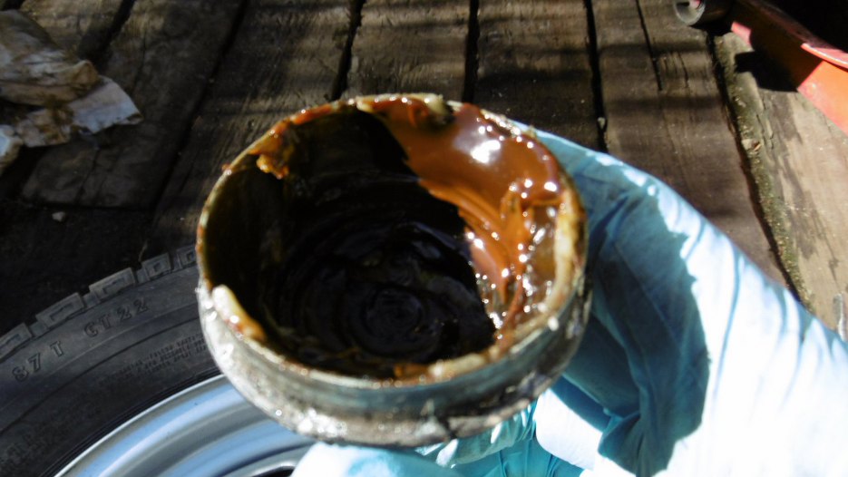 W łożyskach smar wygląda tak. Tu akurat z drugiego koła, gdzie jeszcze tak się nie nagrzał.