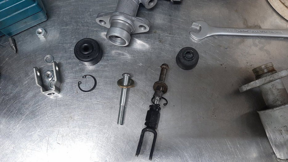 Nawet nie próbowałem tego naprawiać, zamówiłem nową, właściwą pompę. Widać jednak, że różnią się one mocowaniem do pedału.