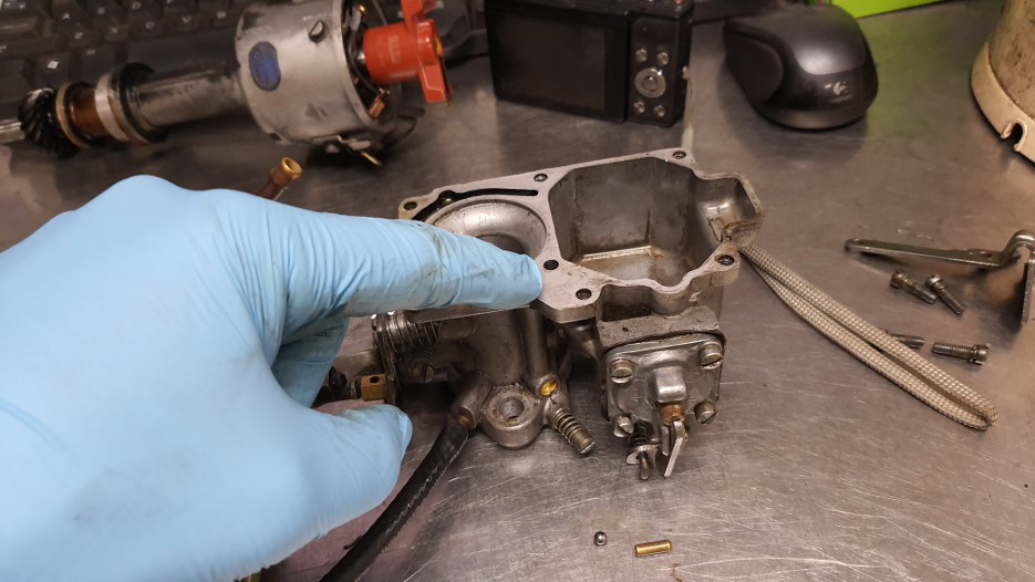 Teraz gaźnik. Zaglądając do gardzieli widać było, że też wymaga czyszczenia.