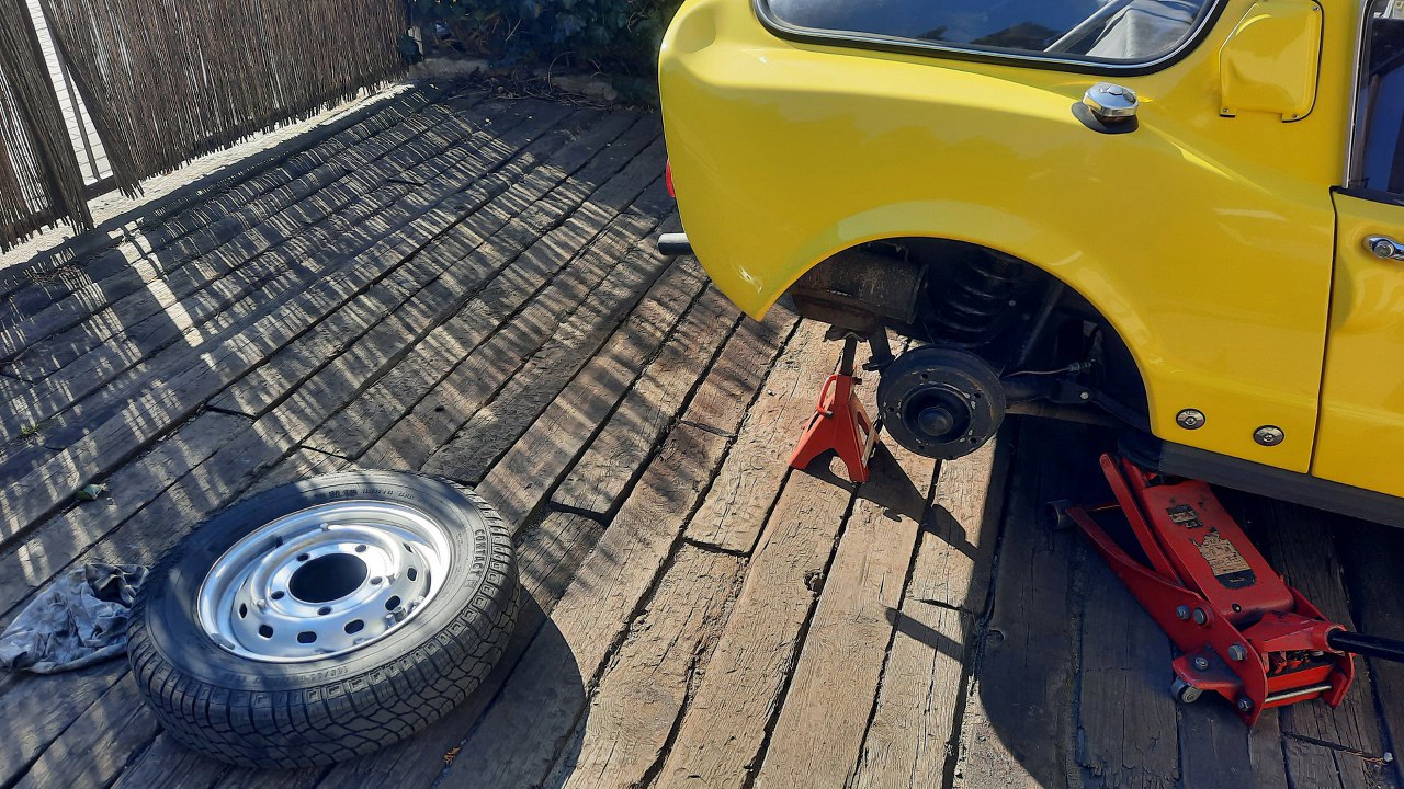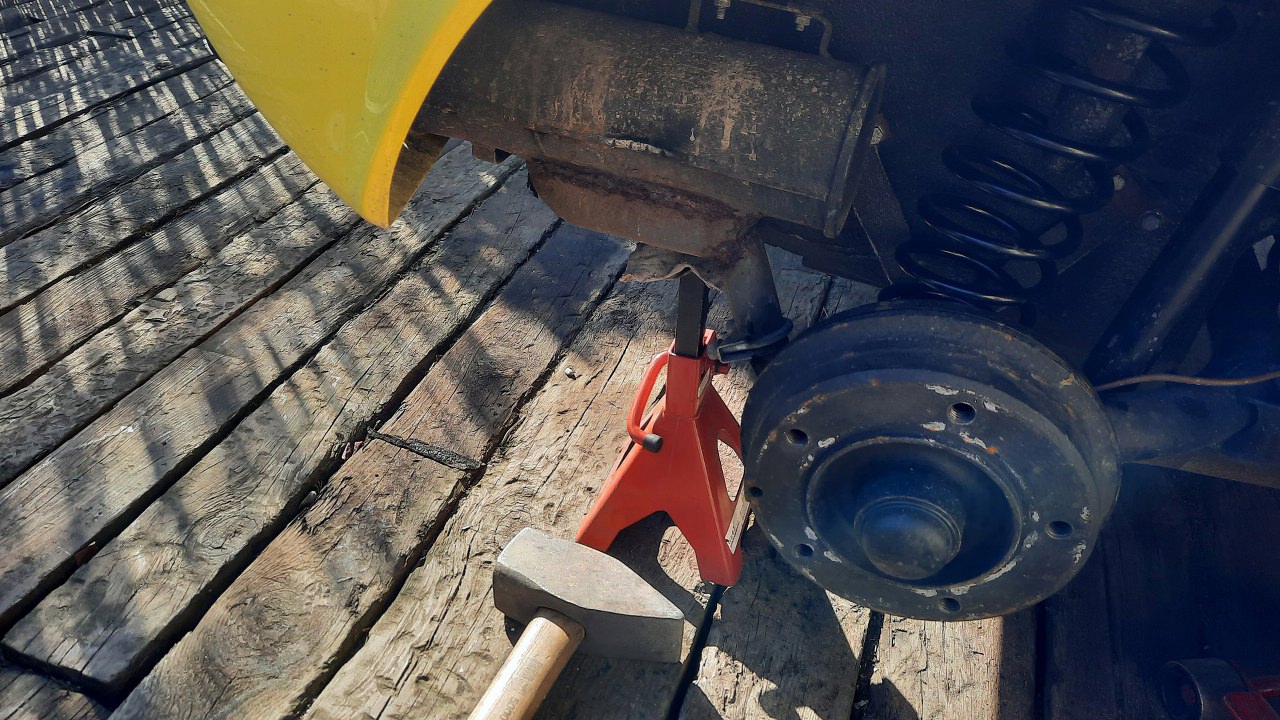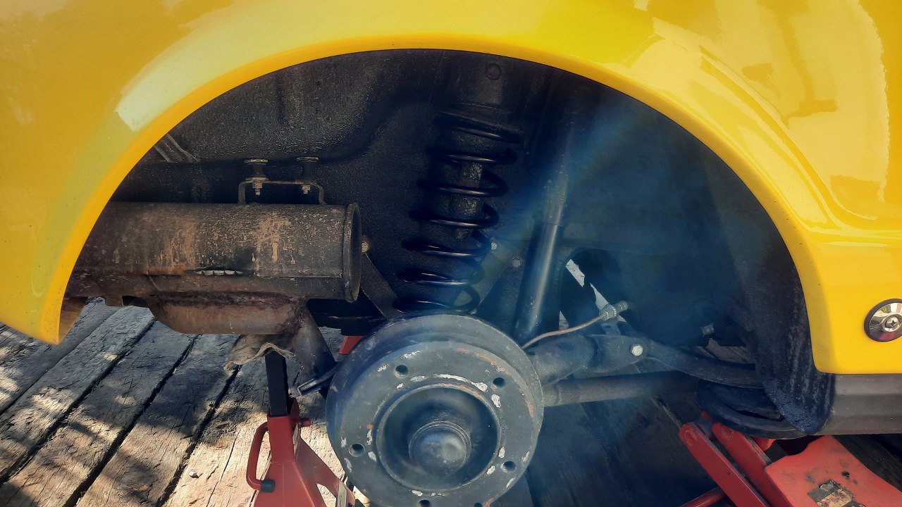 Zabrałem się na początek za tylne sprężyny, bo wymienia się je bardzo szybko. Zdjąłem koła.