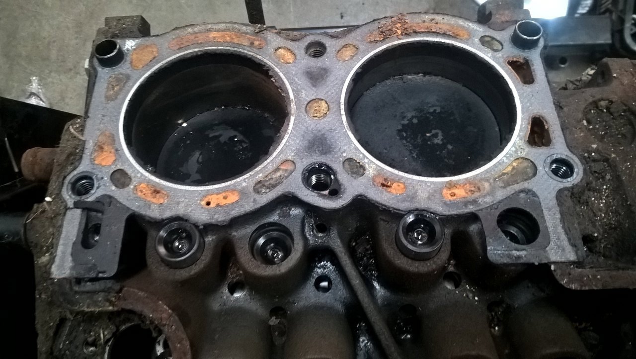 Po myciu i odtłuszczeniu bloku wbiłem broki kanałów wodnych.