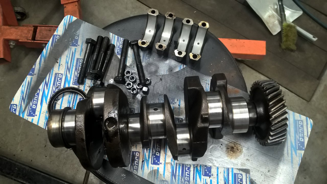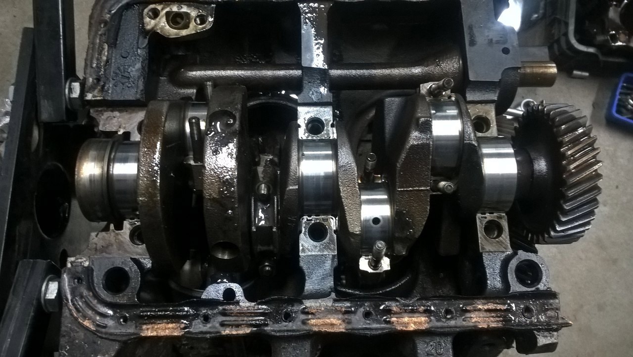 Naprawdę wał jest bardzo ładny. Ostatecznie ten wał trafił do innego silnika, z Transita opisanego u mnie na stronie, po tym, jak tam wał pękł. Ale za to w końcu właściciel Transita oddał mi inny wał od 1.7. Tu akurat nie ma to znaczenia, bo i tak wszystko będzie zmieniane.