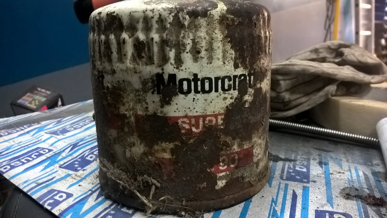 Podczas rozkładania tego silnika było wiele malowniczych widoków, jak ten filtr oleju.