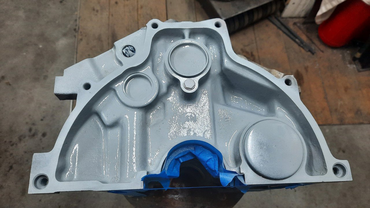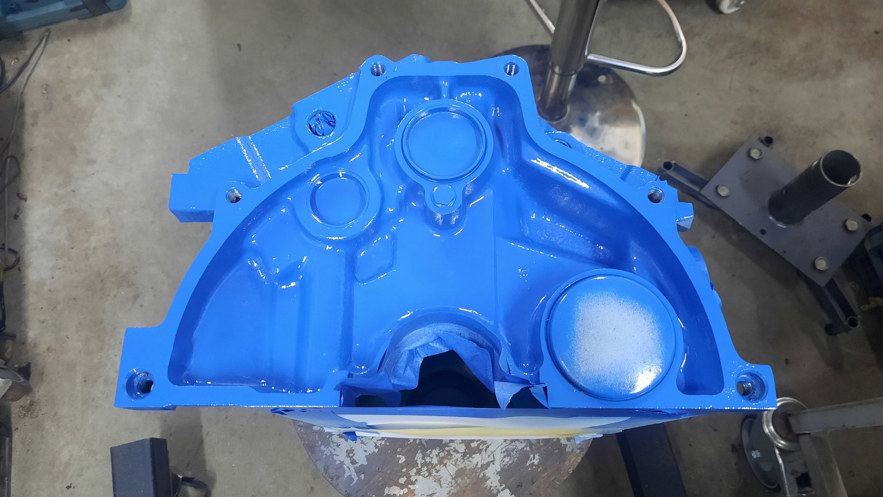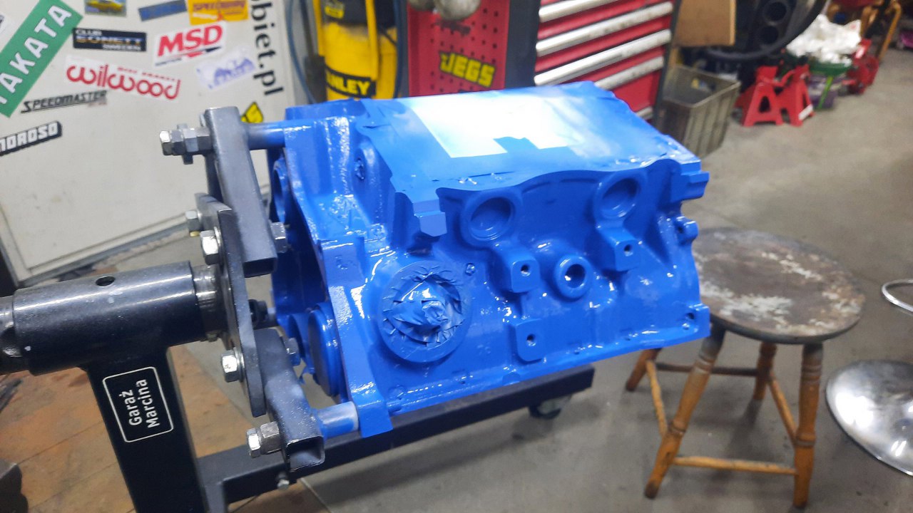 Po jego wyschnięciu położę jeszcze dwie warstwy lakieru. Tym razem cały silnik będzie w fordowskim niebieskim.