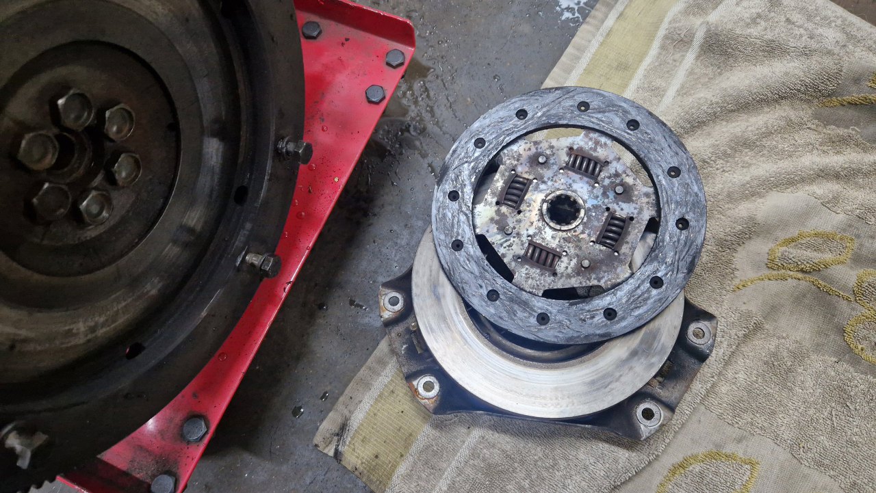 Jeszcze podczas wyjmowania silnika z żółtego Sonetta sprawdziłem sprzęgło. Tarcza była już trochę zużyta, więc musiałem ją oddać do nabicia nowych okładzin.