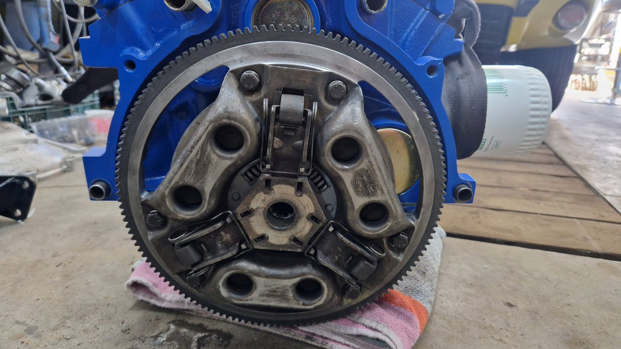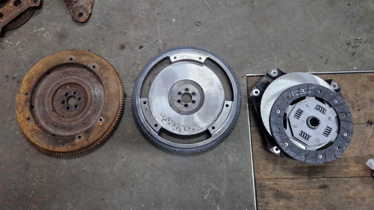 Ponieważ silnik będzie ciut (a mam nadzieję, ża nawet nieco więcej niż ciut) mocniejszy niż oryginał, nowe okładziny są kevlarowe. Docisk został przeszlifowany, a koło zamachowe... odelżone. Tylko, że to chyba eufemizm :).