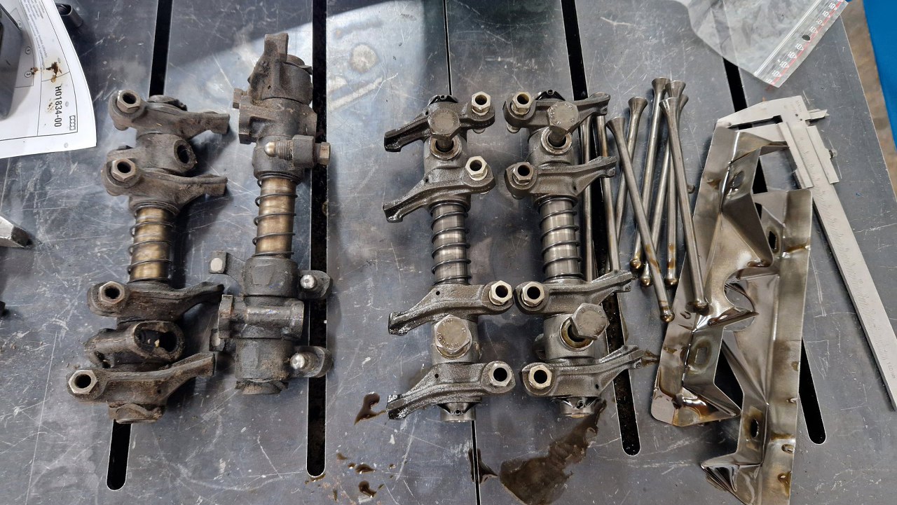 Po wyczyszczeniu dźwigienek zamontowałem je na silniku i ustawiłem luzy zaworowe.
