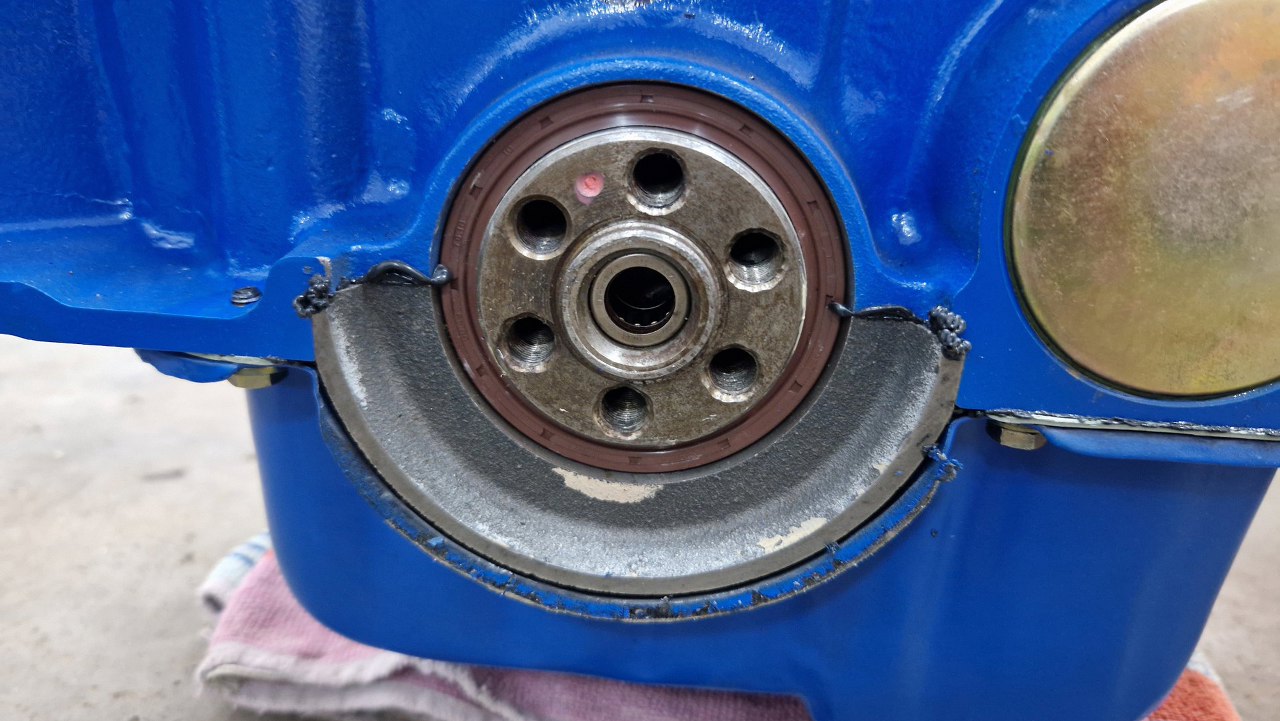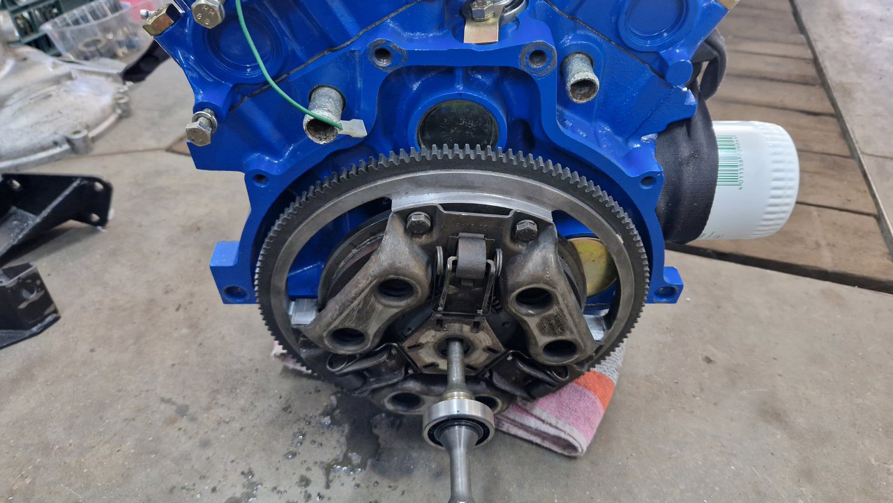 Kolejna rzecz do zrobienia przed przykręceniem koła zamachowego - ten silnik był zdaje się od Forda, sam już nie pamiętam. Ale w wale korbowym jest łożysko igiełkowe, a powinna być tylejka brązowa, jak w Saabie.