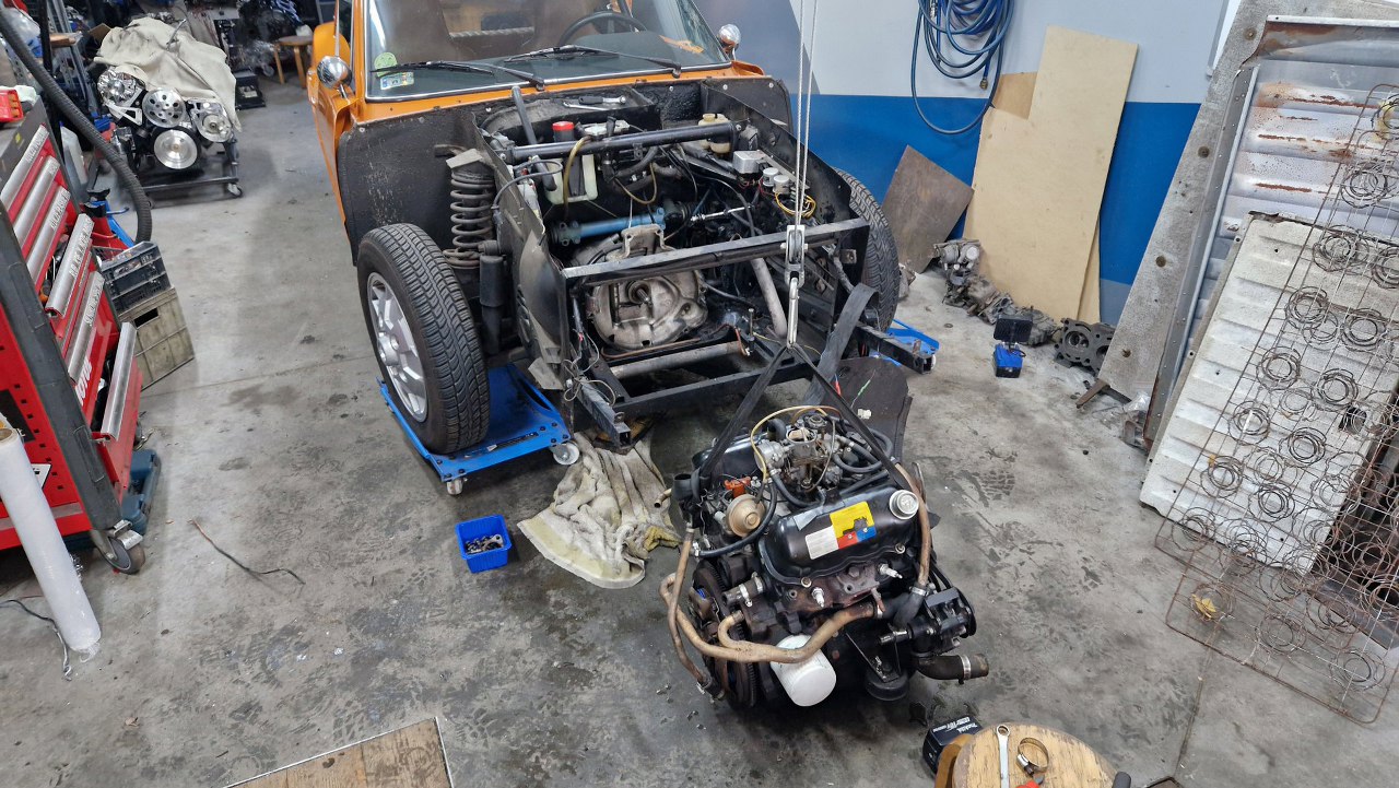 Zostaje mi dość ogołocony przód samochodu z silnikiem do wyjęcia.