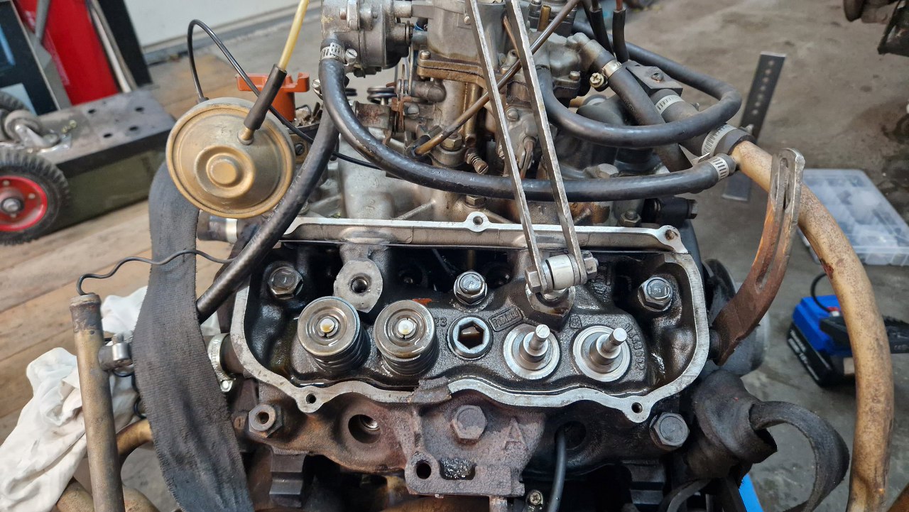 Wymiana nie jest jakaś mocno skomplikowana - w cylinder przez otwór świecy wprowadzam silikonową rurkę żeby podeprzeć zawory, a przyrząd (samoróbkę) do ściskania sprężyn wkręcam w otwór śruby mocującej klawiaturę.