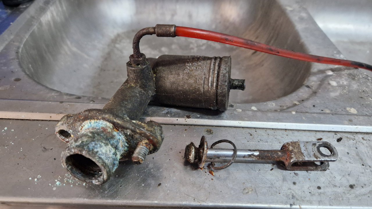 Po próbie odpowietrzenia okazało się, że wysprzęglik nie jest w lepszym stanie niż pompka i musiałem go też wymienić. Nawet rurka do zbiorniczka była za krótka po wymianie pompki.