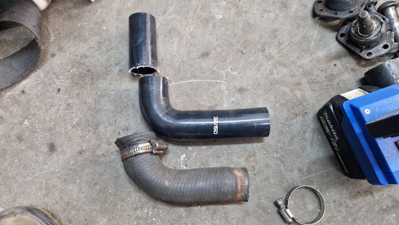 Przy okazji wkładania silnika wymieniłem też dolny przewód chłodnicy, bo był już podejrzanie sparciały.