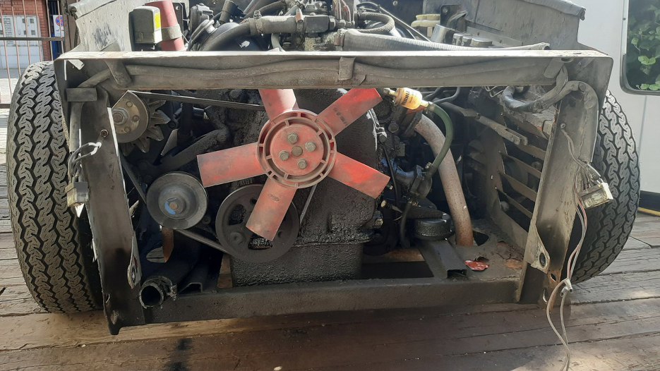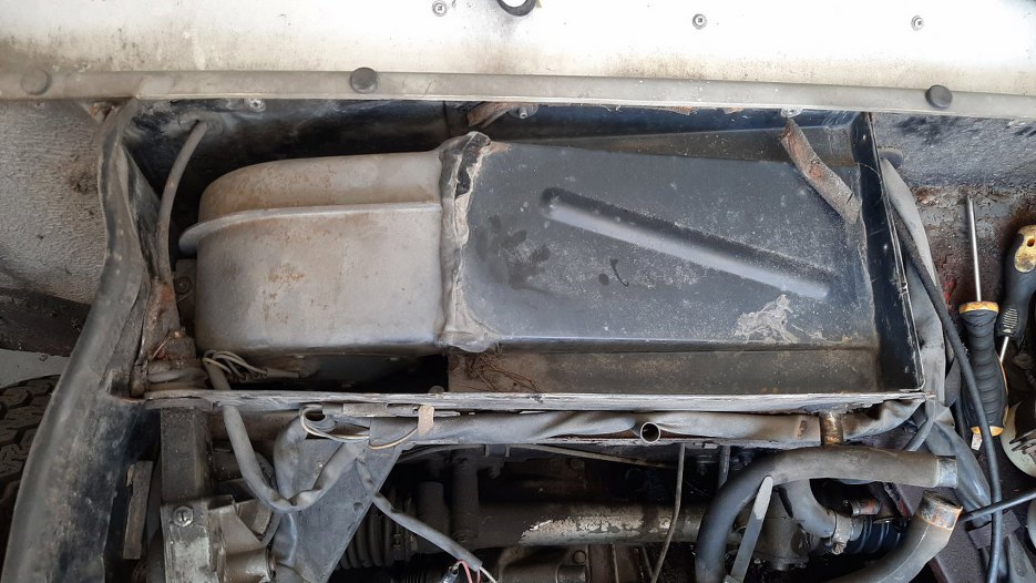 A tak wygląda to, co jest pod spodem przodu. Dopiero w takim stanie jest jakiś sensowny dostęp serwisowy do silnika.