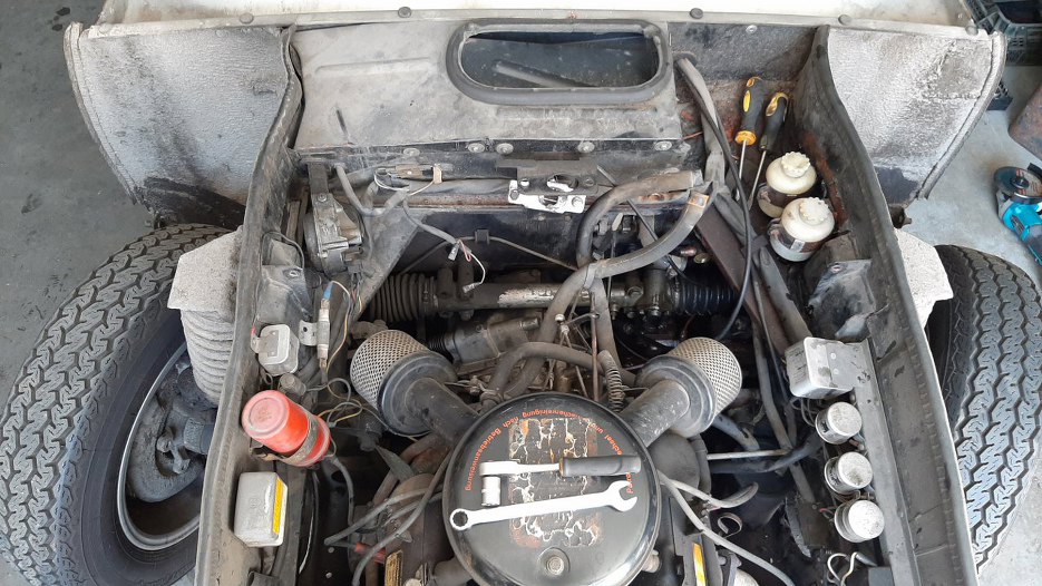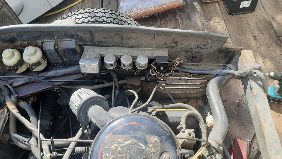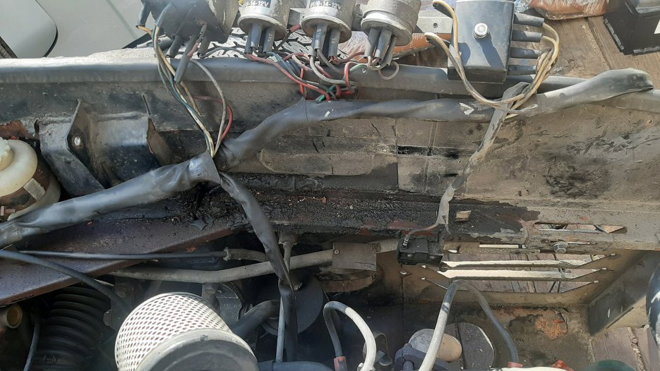 Po zabraniu ode mnie części przez właściciela miałem chwilę, więc zająłem się drobnymi rzeczami. Zdjąłem znowu przód i stwierdziłem, że zdemontuję elektrykę spod maski. Tu mamy widok na stronę kierowcy.