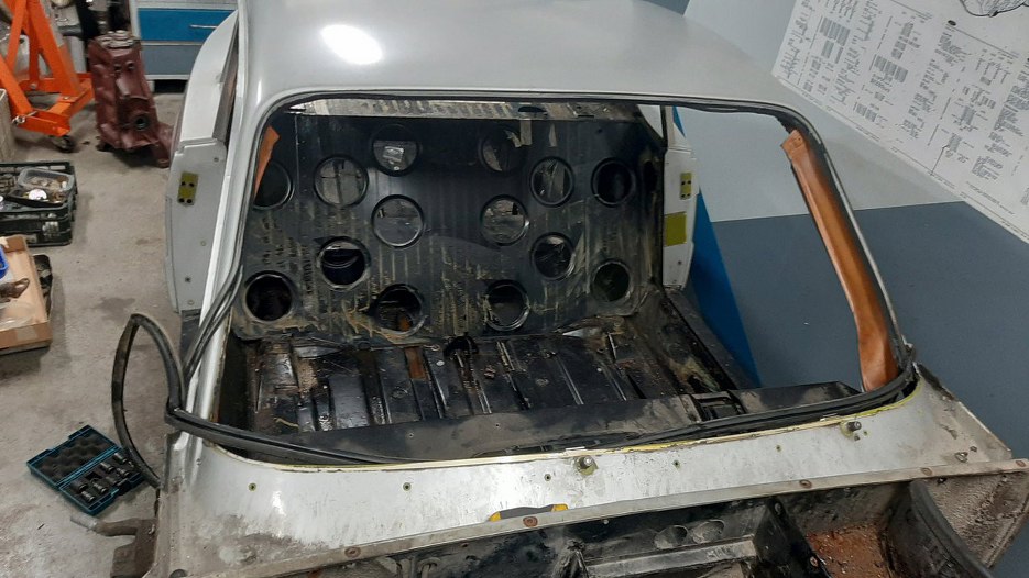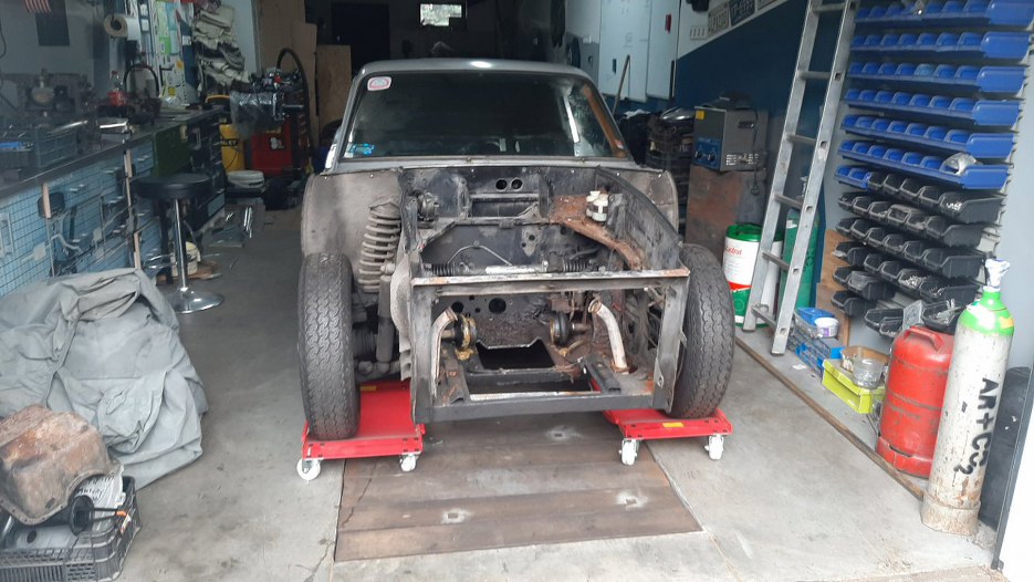 Wracam do Sonetta po krótkiej przerwie. Przód w całości wywieźliśmy do graciarni. Rozbieramy auto dalej. Wstawiłem je do garażu na wózki umożliwiające wygodne jego przestawianie.