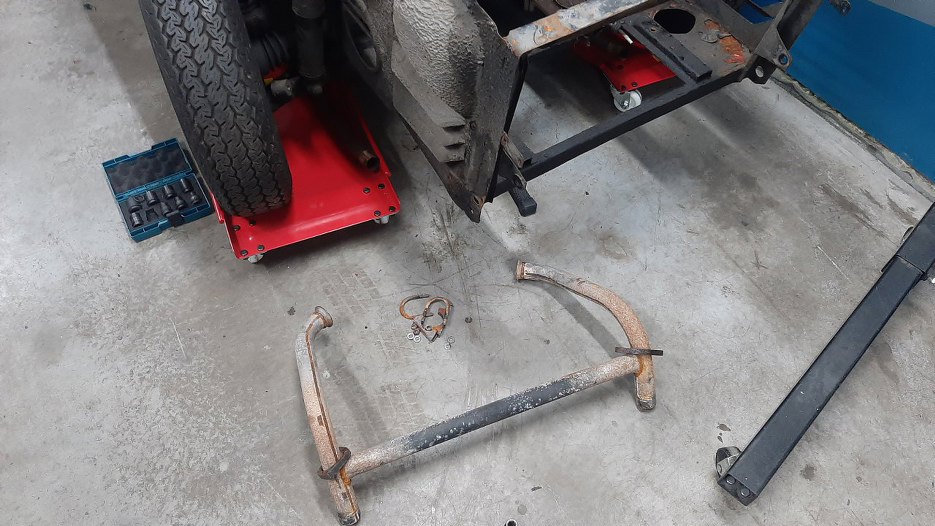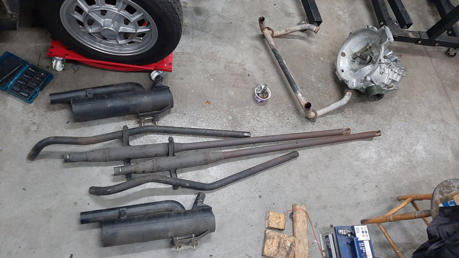 Potem poszło w miarę sprawnie, układ dał się rozłożyć bez niespodzianek, korozji, czy zapieczonych rur. Co ciekawe, paktycznie wszystkie gumki mocujące wydech do nadwozia były pourywane.